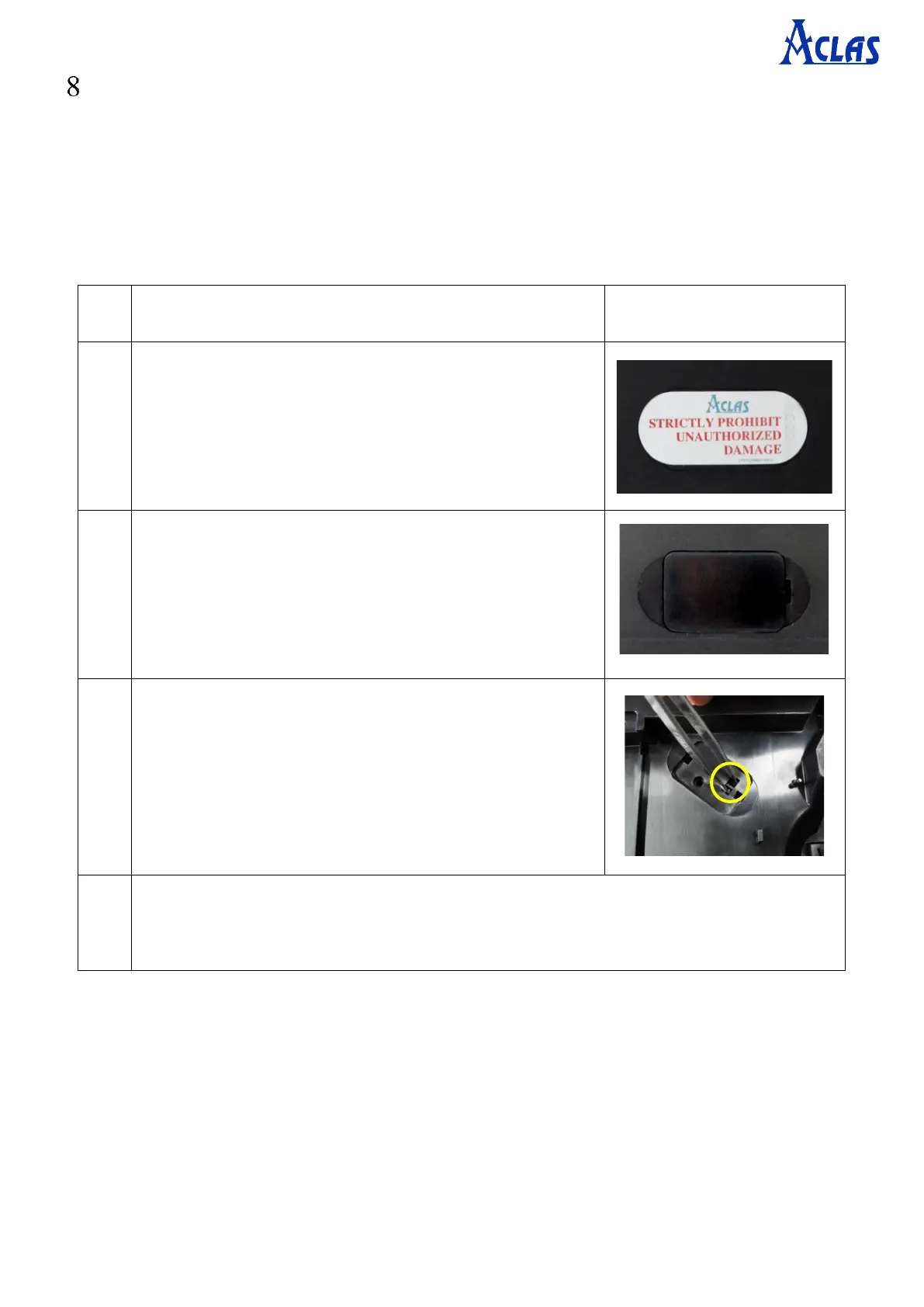 Destroy the sealing by tearing the fragile lead sealing. Then,