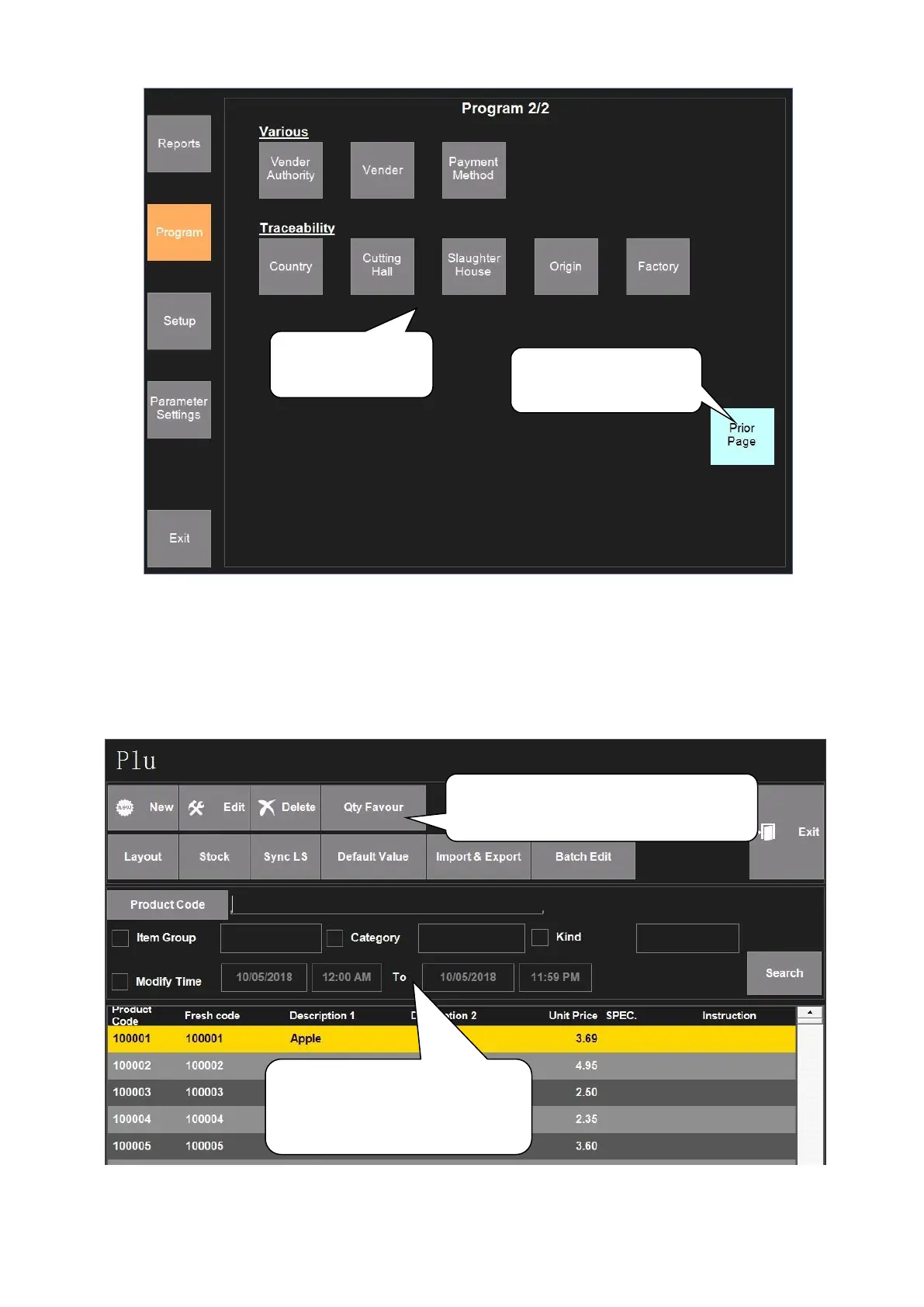 5.2.1.1. PLU Setting