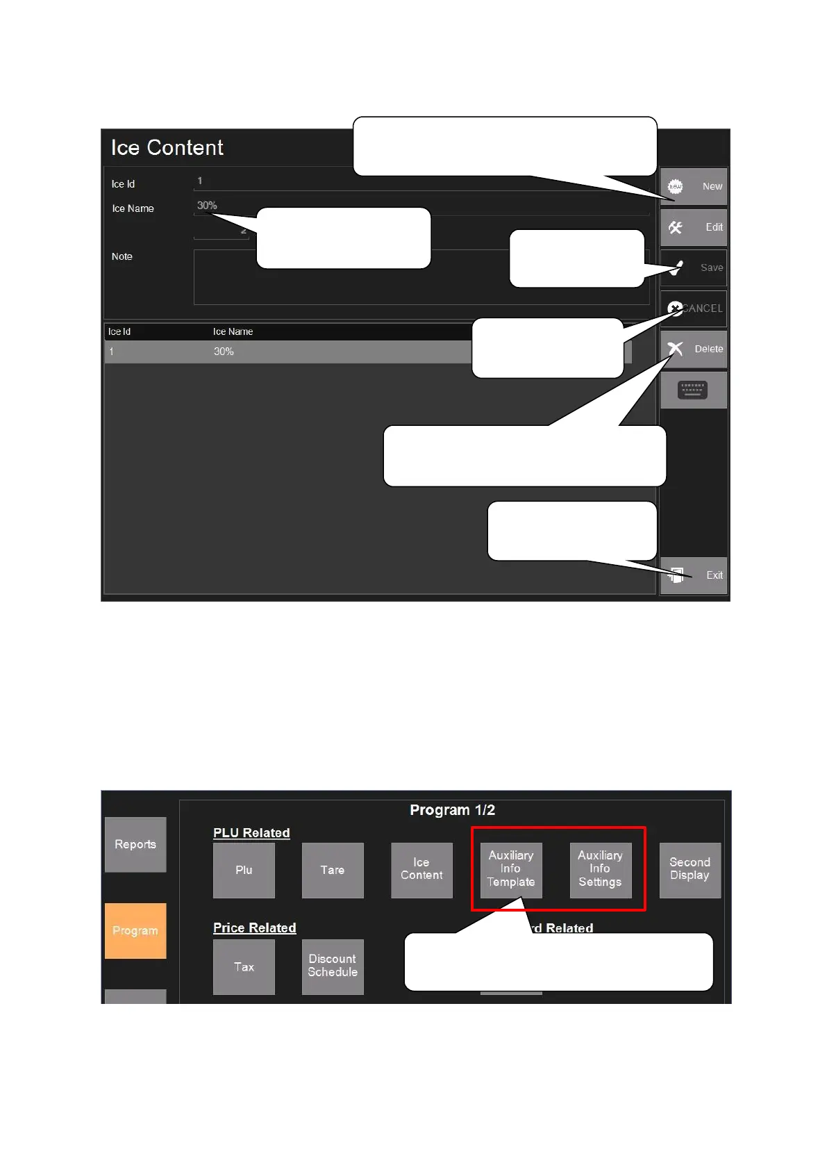 ACLAS TS5NX-A - Ice Content; Auxiliary Information Setting
