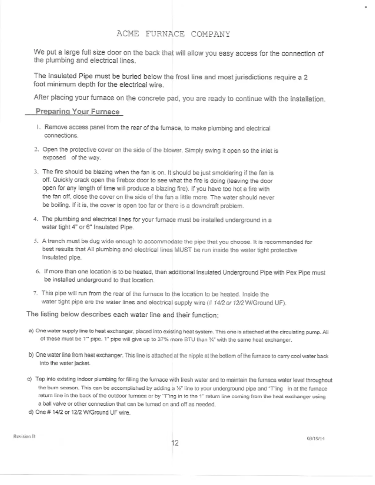 ACME 235 - Preparing Your Furnace; Underground Plumbing and Electrical Installation; Heating Multiple Locations; Water Line Functions