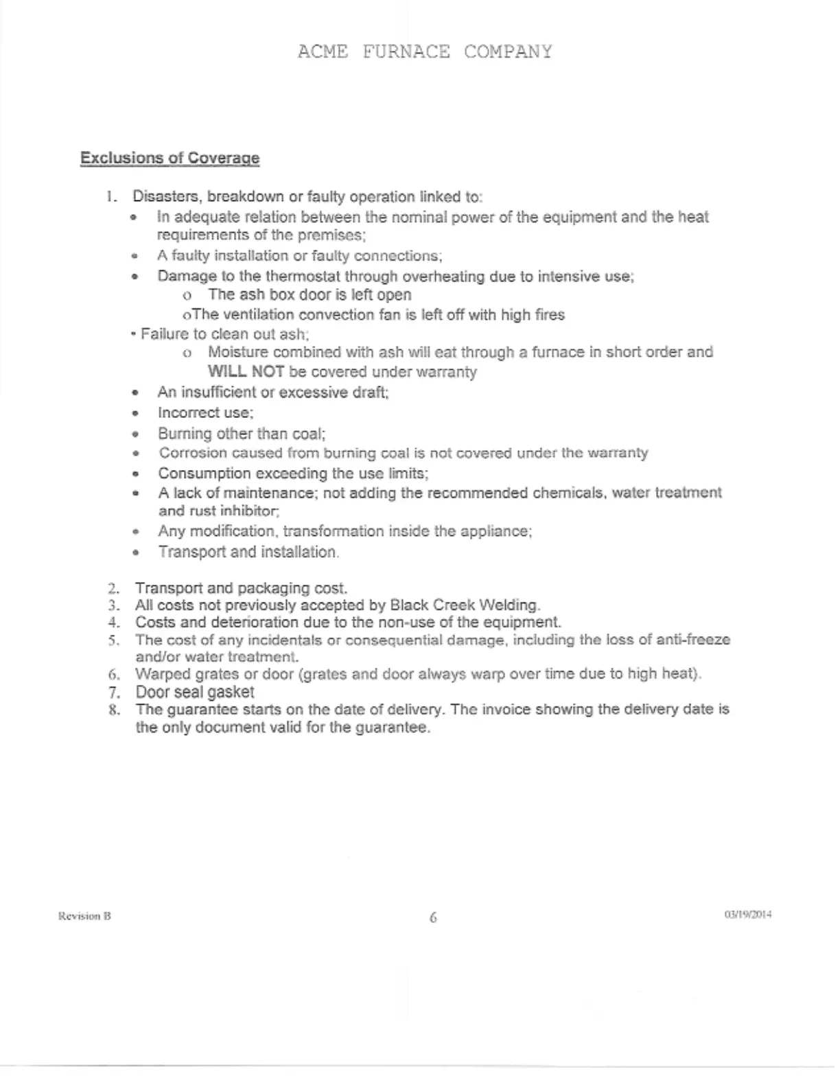 ACME 340 - Exclusions of Coverage; Warranty Exclusions