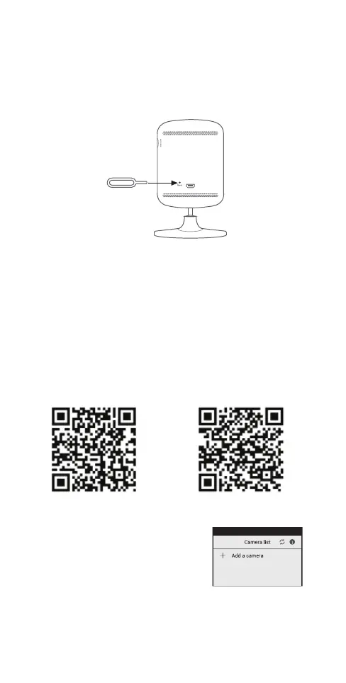 ACME IP1101 - Initial Setup and Pairing; Resetting the Camera; Setting Up the Camera; Setting Up the Application and Pairing