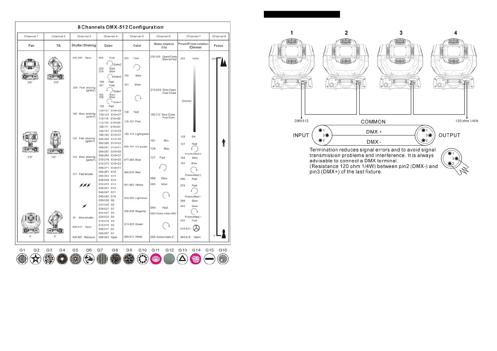 6. The end of the DMX 512 system should be terminated to reduce signal errors.