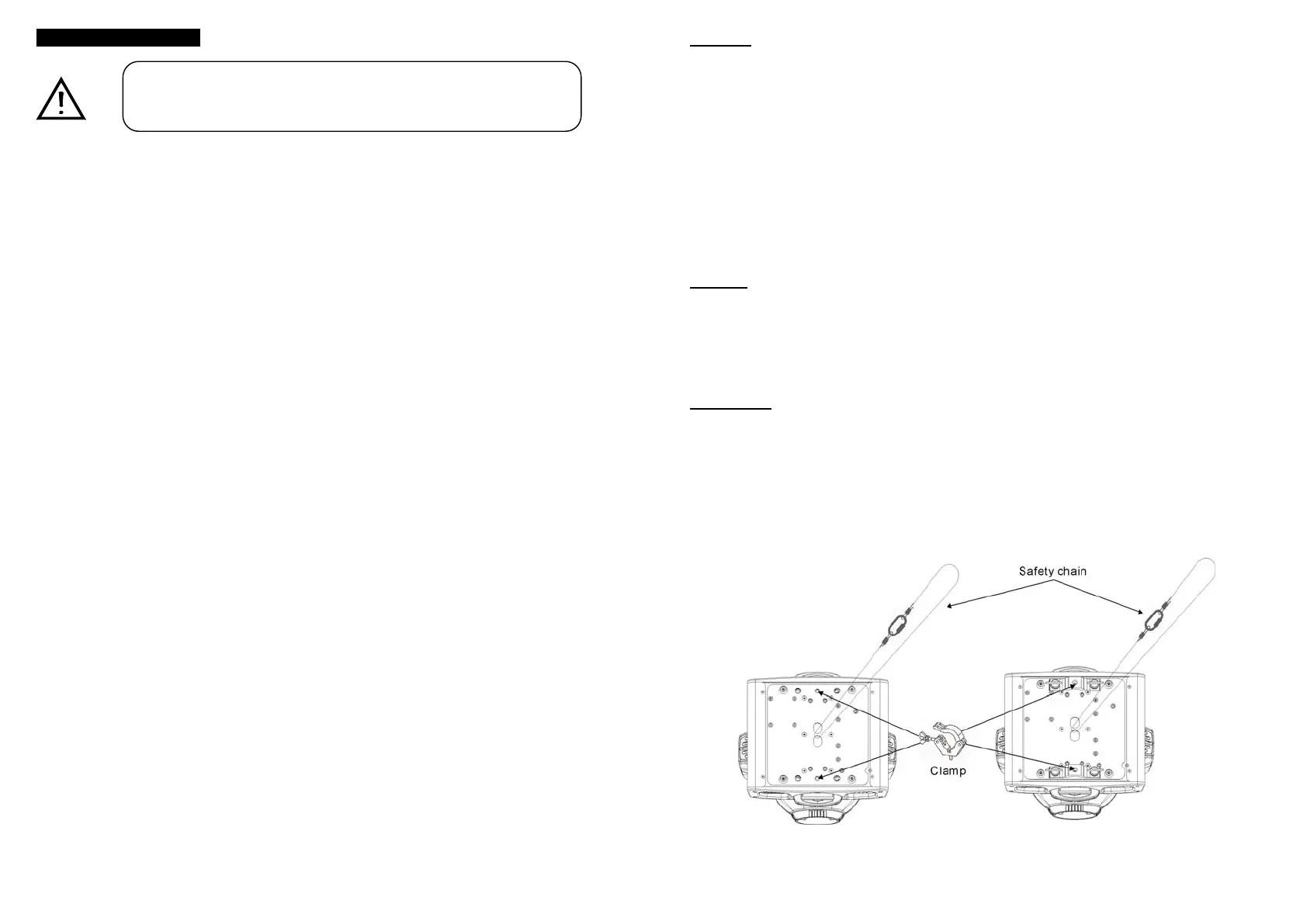 base. Use clamps to fix the unit to truss. Always ensure that the unit is firmly fixed to avoid