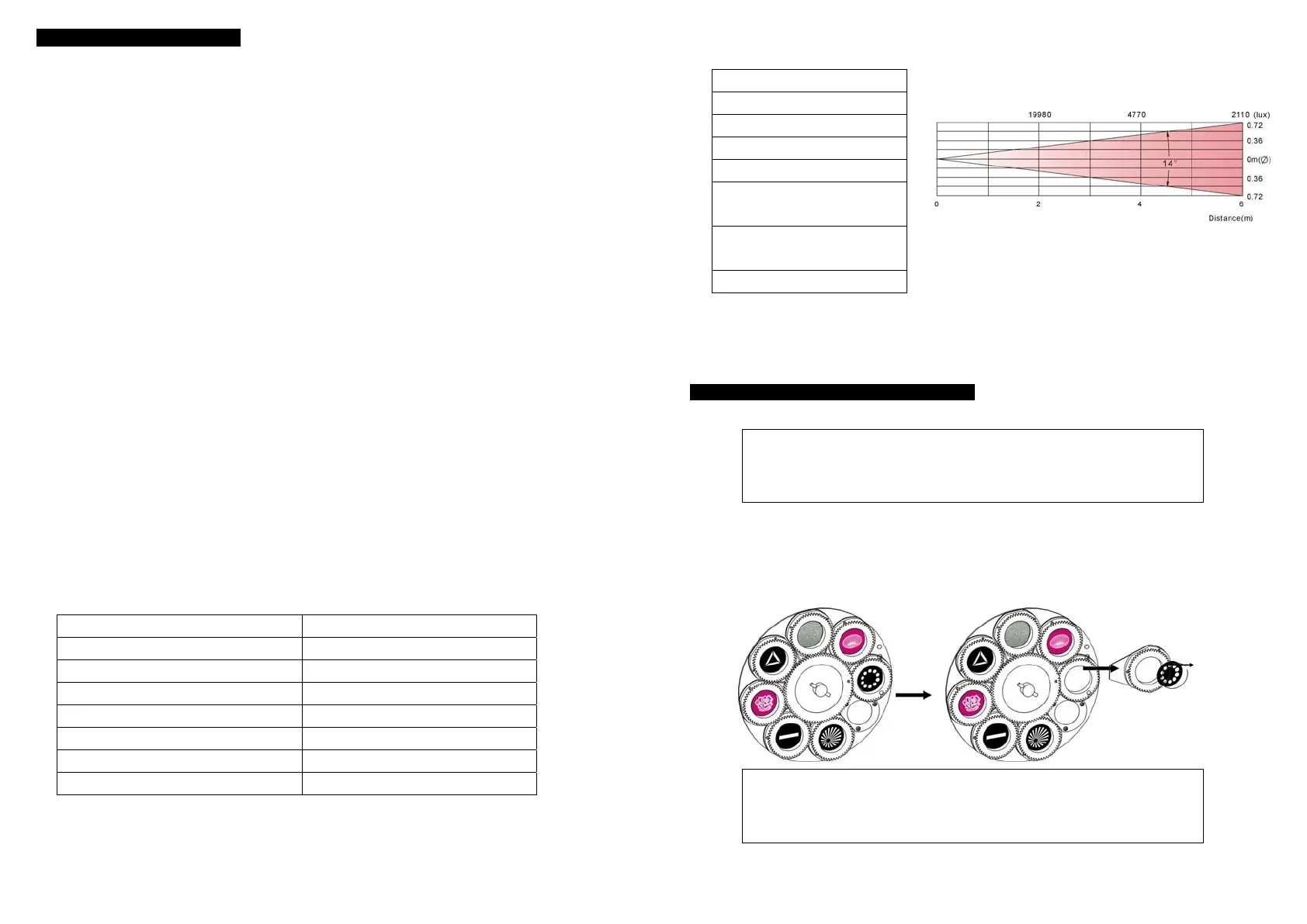 - Independent gobo wheel with 7 rotating, replaceable gobos
