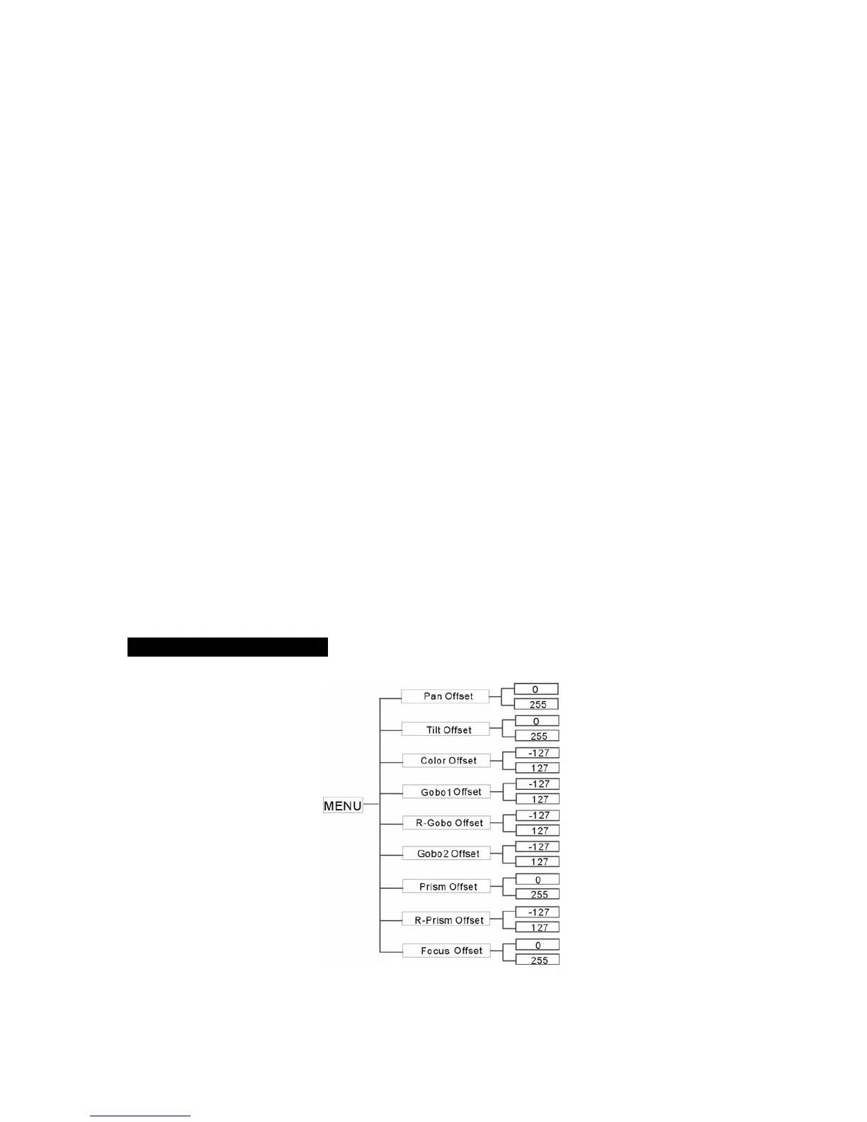 up to chose Pan Offset, Tilt Offset ,Color Offset, Gobo1 Offset, R-Gobo Offset, Gobo2 Offset, Prism