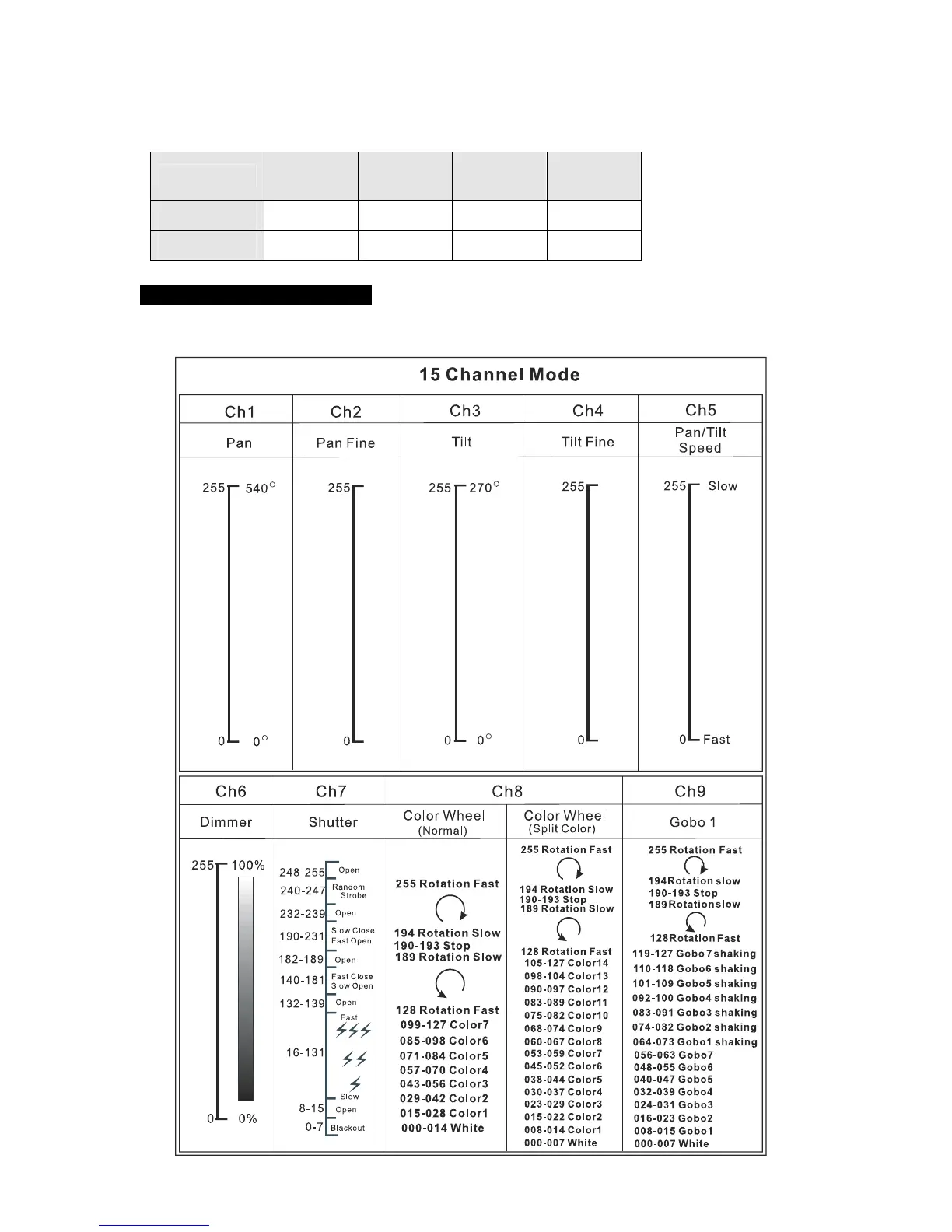 the menu mode. Please refer to the following diagram to address your DMX512 channel for the first 4