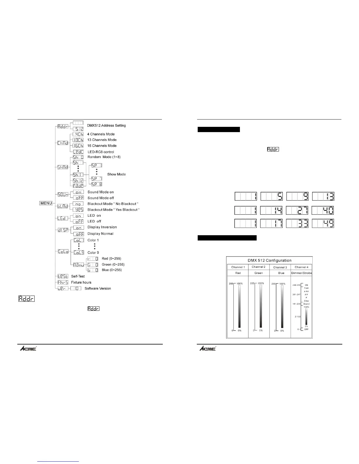 DMX512 address. Once the address has been selected, press ENTER button to