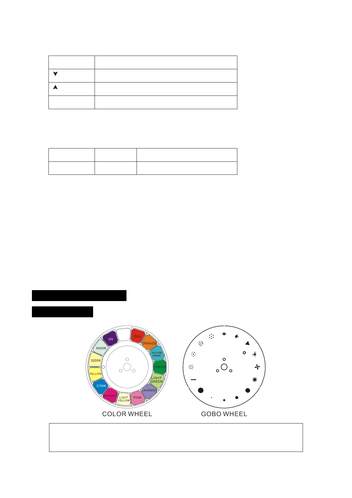 Unplug from mains before changing the color wheel/gobo wheel!