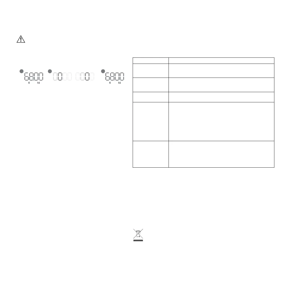 „50.00 kg“ ekraanil kuvatakse „0“, mis liigub 2–3 korda vasakult paremale,