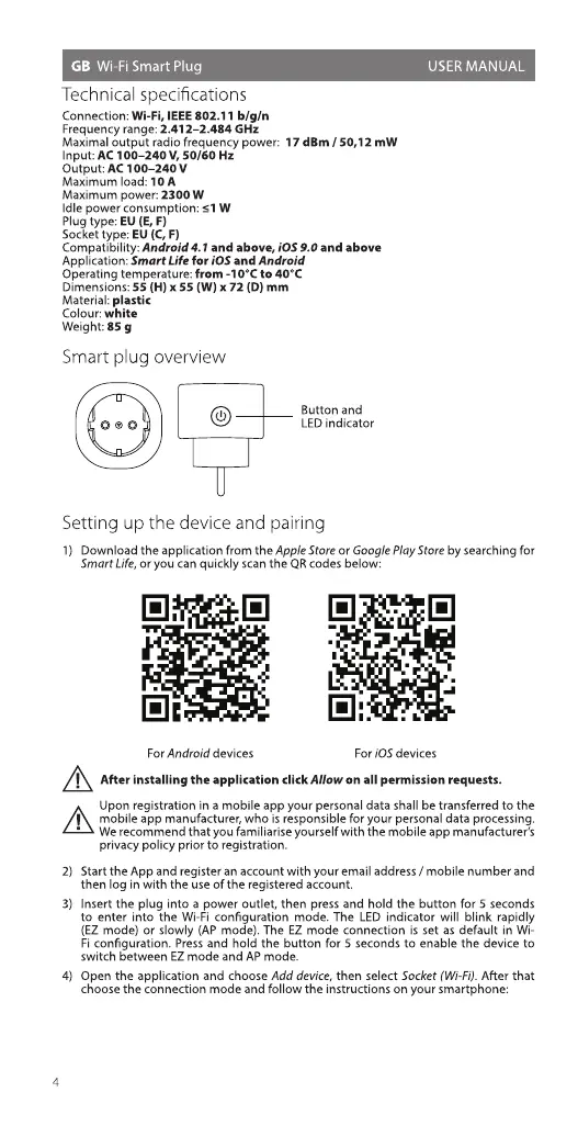 ACME SH1101 - Product Overview and Specifications; Technical Specifications; Device Setup and Initial Pairing; App Installation and Permissions