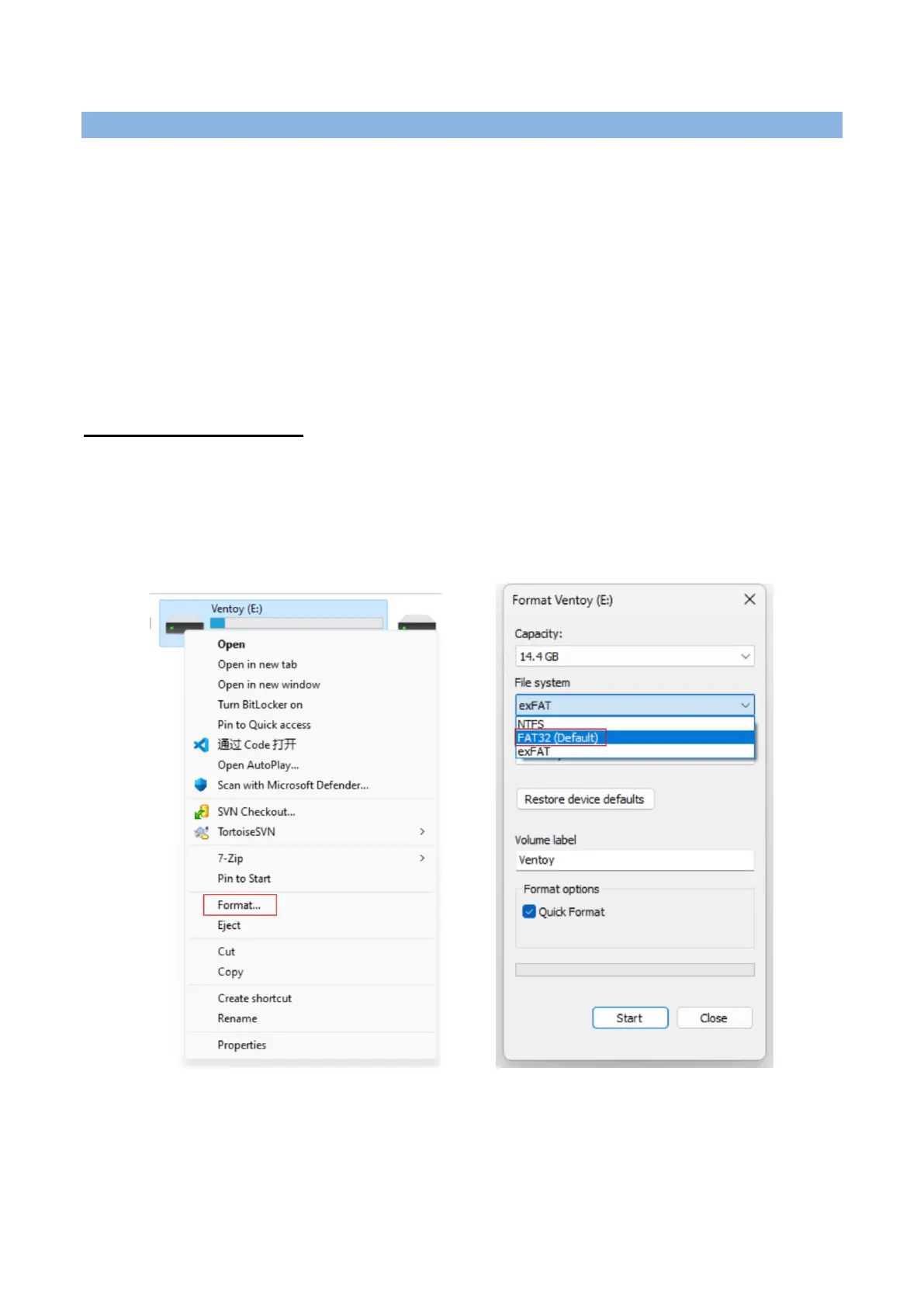 Format the USB flash drive: