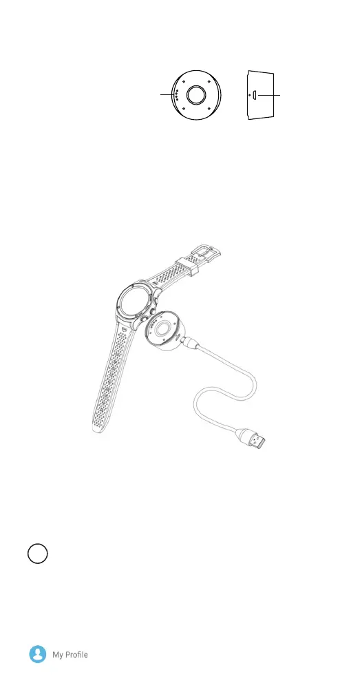 1. Novietojiet uzlādēšanas pāreju zem pulksteņa. Pārliecinieties, ka uzlādēšanas tapas