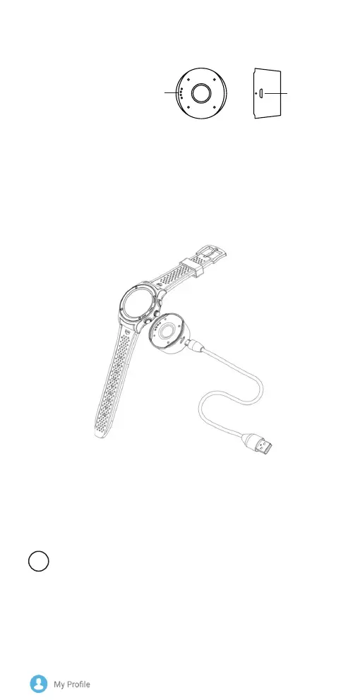 1. Legen Sie den Ladeadapter unter die Uhr. Stellen Sie sicher, dass die Ladestifte des