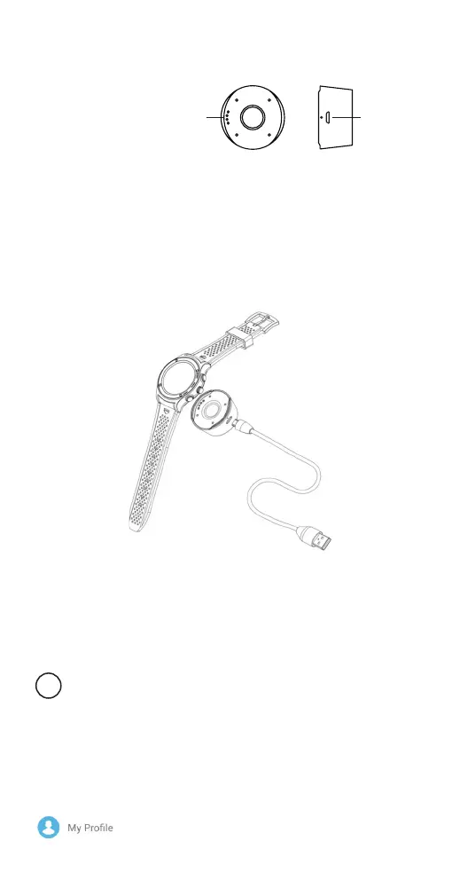 щифтове на адаптера докосват контактите за зареждане на смарт часовника.