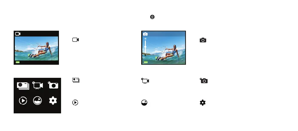 Schalten Sie die Kamera ein und drücken Sie mehrmals hintereinander den Power-/Modus-Knopf oder wischen Sie auf dem Display nach rechts, um die Kamera-Modi anzuzeigen.