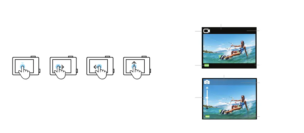 Use these gestures to navigate the touch display. When swiping, swipe from the edge of the screen.