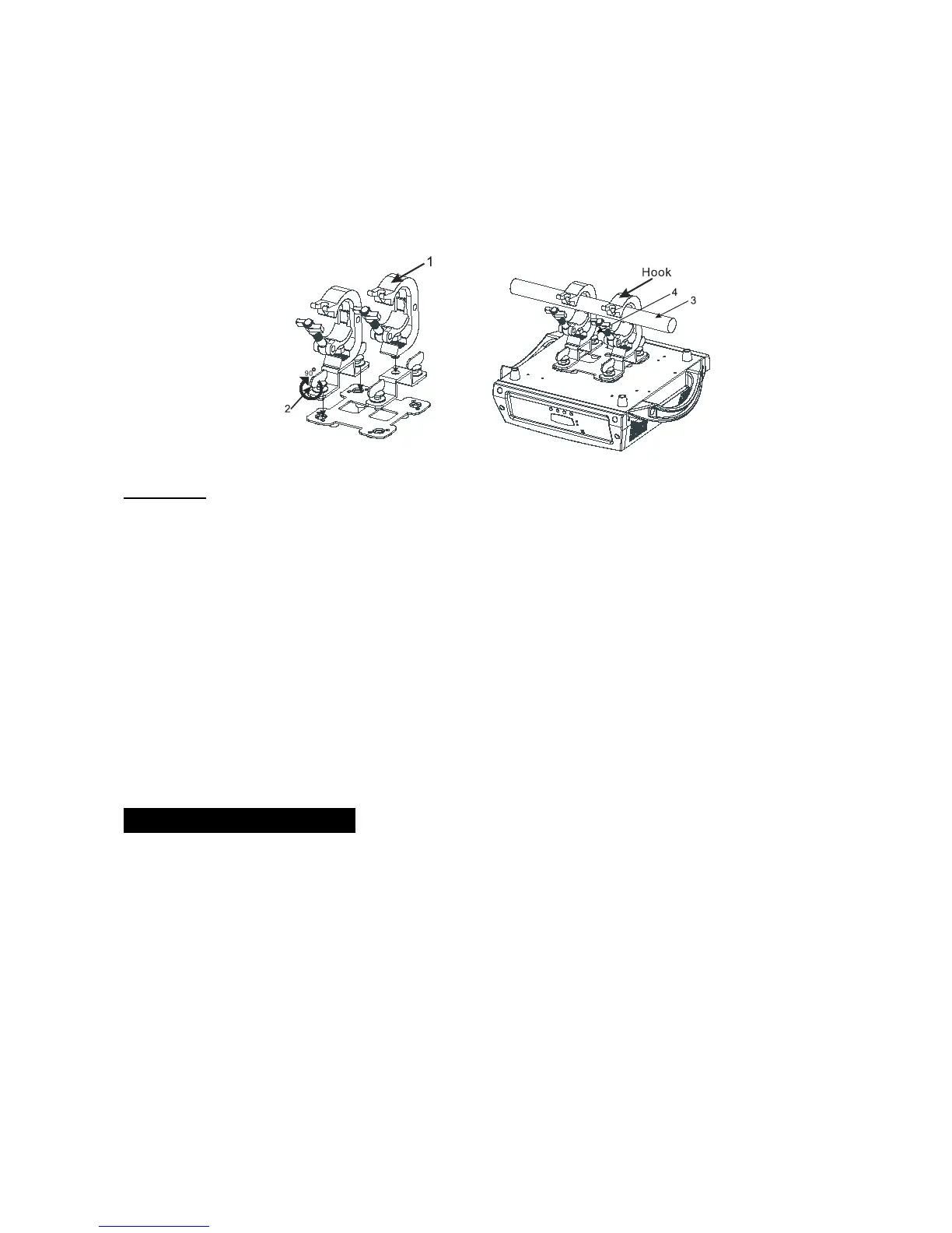 3. Hang the fixture to the support (4) through clamp and fasten the screws (5). Fasten the safety
