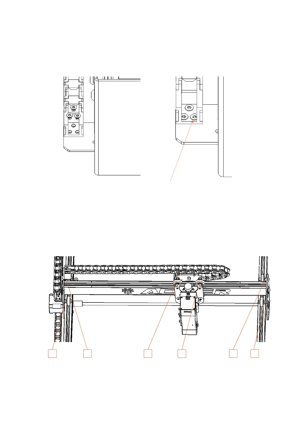 将图示四个位置的拖链固定孔用沉头螺丝锁紧即可