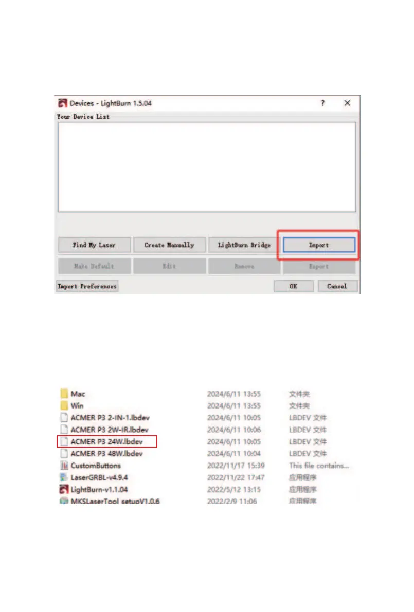 "ACMER P3 24W.lbdev" file, then click "Open".
