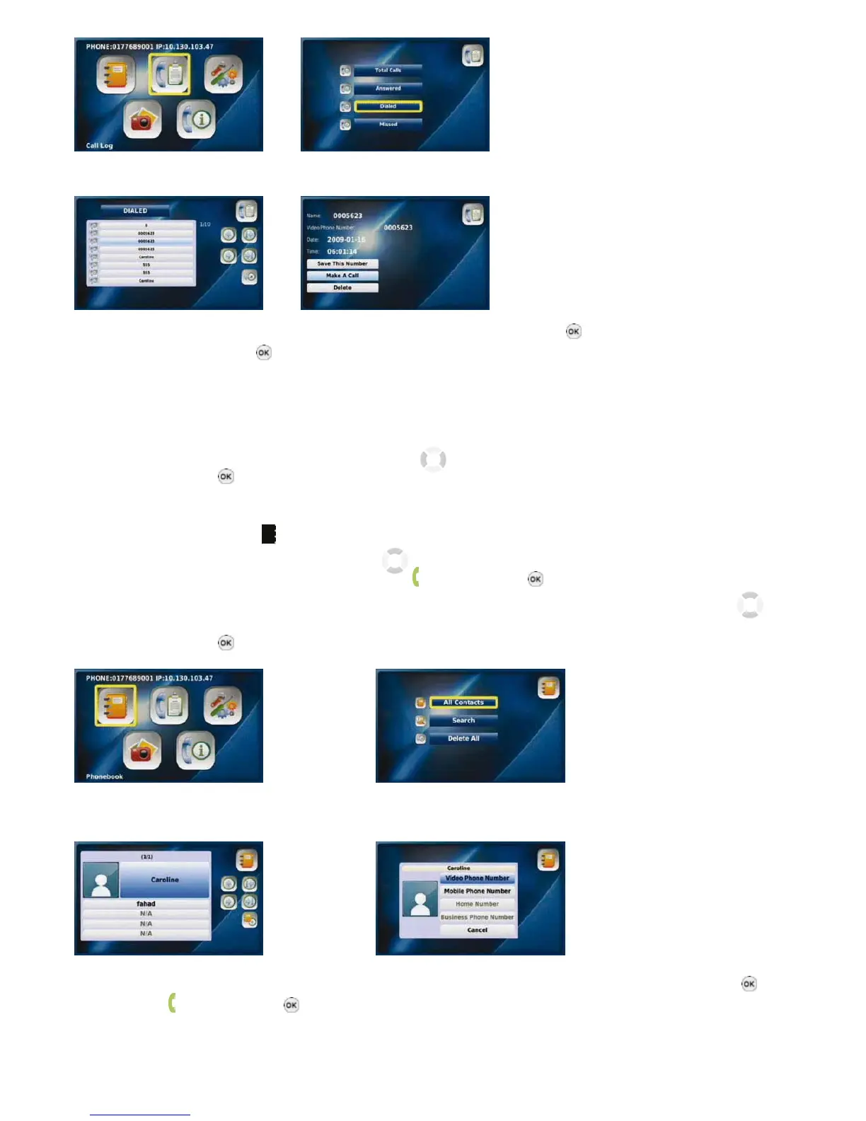 to call and press the “OK” button