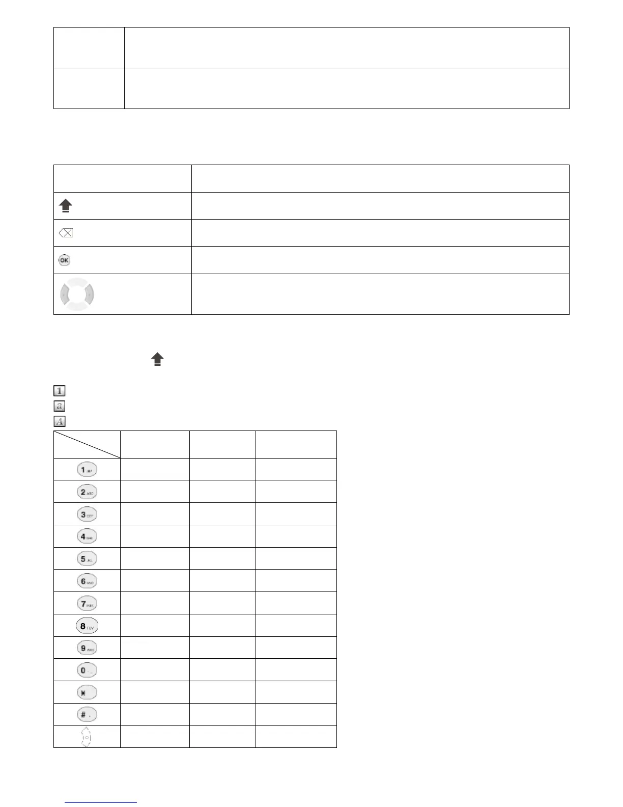 Enables you to select the type of characters to enter (Numeric/Lowercase/Capital)•