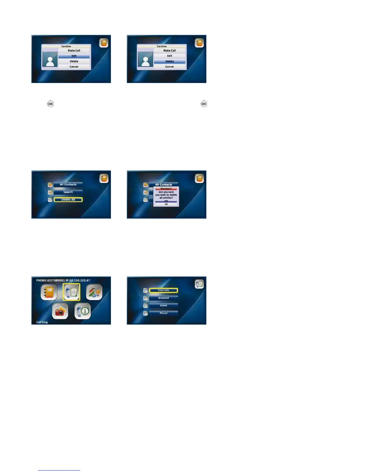 Select “Edit” and press the “OK” To “Delete” a contact, select “Delete”