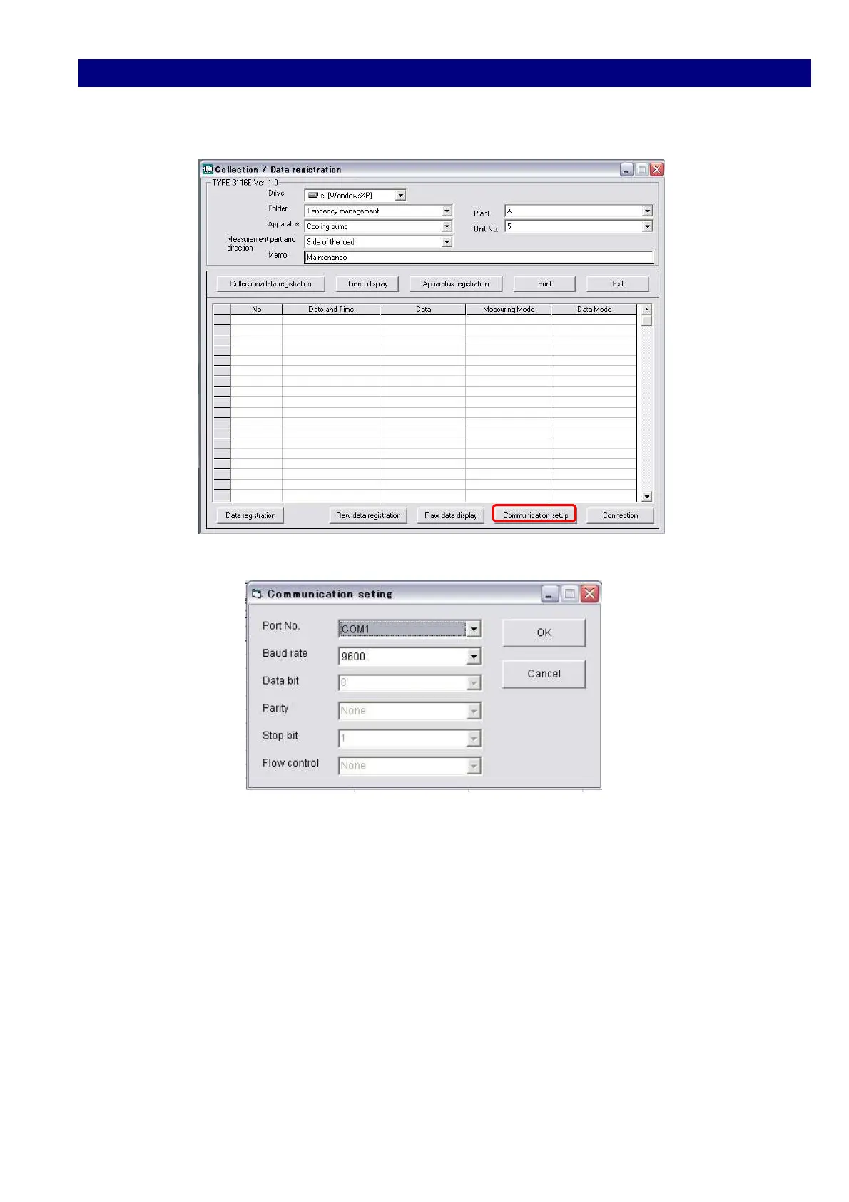 Port No.:COM1, Baud rate:9600