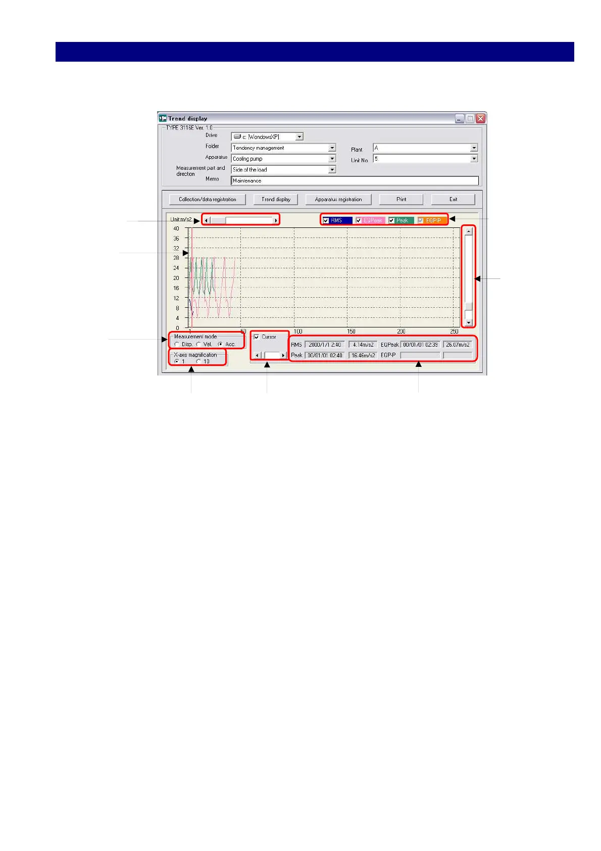 If the mark ☑ of cursor is turned on, the detailed measurement value at the cursor