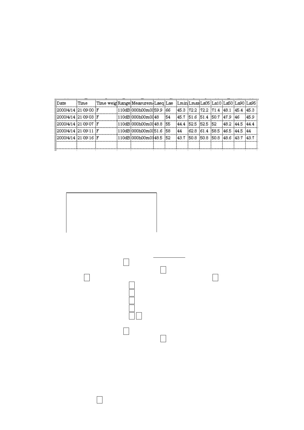 In the first line, Starting date and time, Time weighting and Range are transferred.