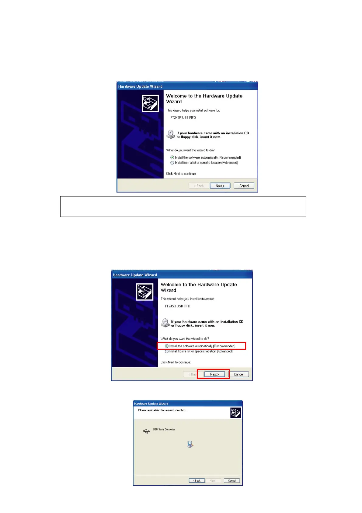required. If “FT245R USB FIFO” is detected as a new hardware a, USB driver shall be installed