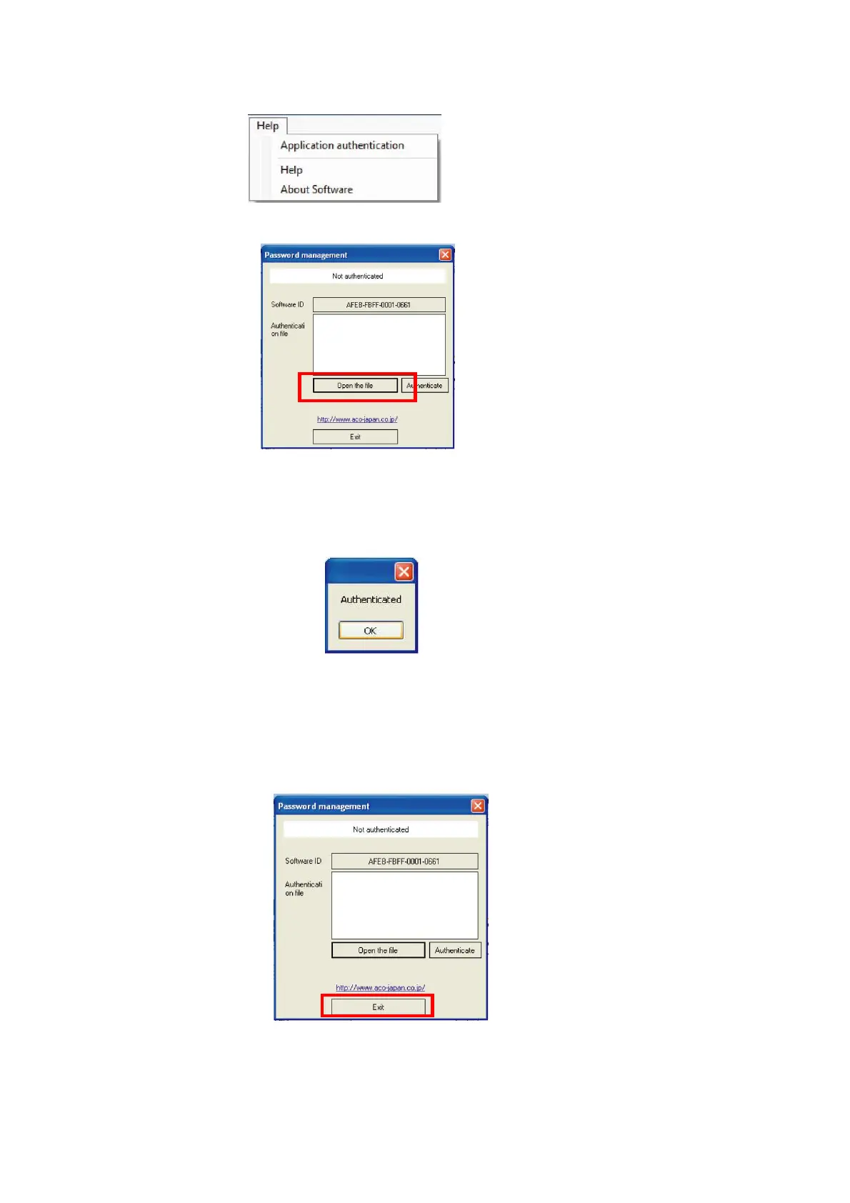3. Select [Help] → [Application authentication] on the Menu Bar.