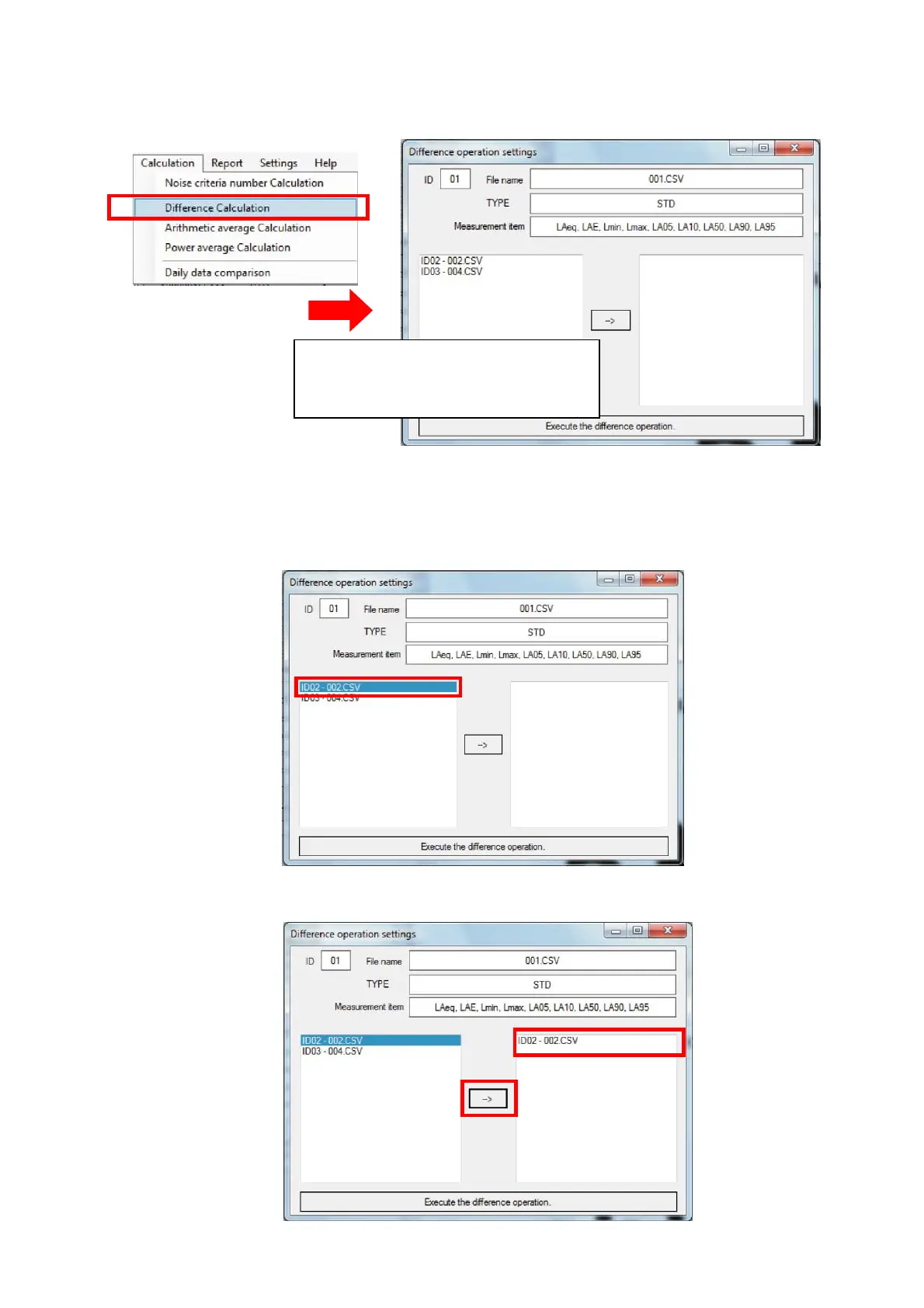 2. Select [Calculation]→[Difference Calculation] on the Menu Bar.