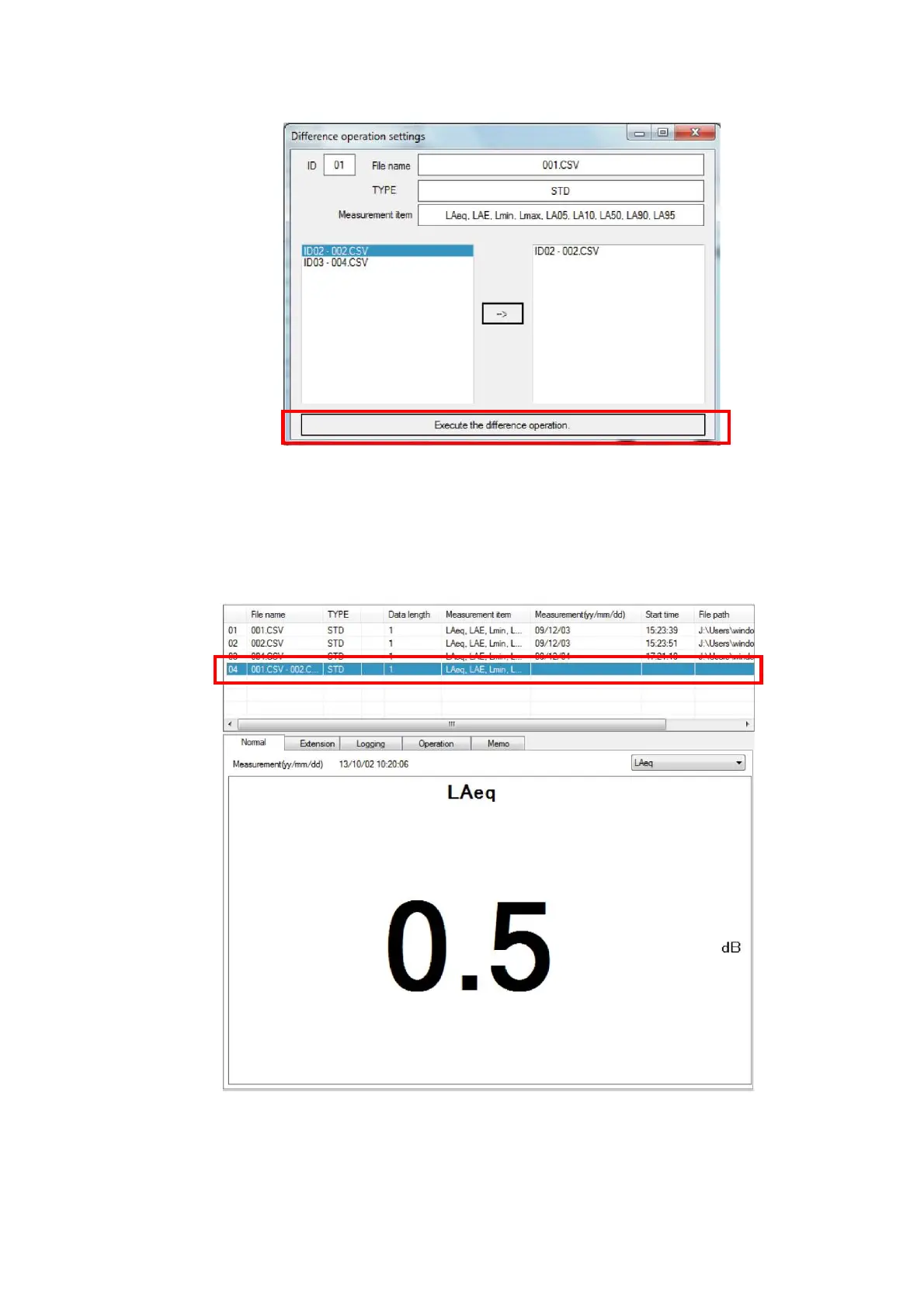5. Click [Execute the difference operation].