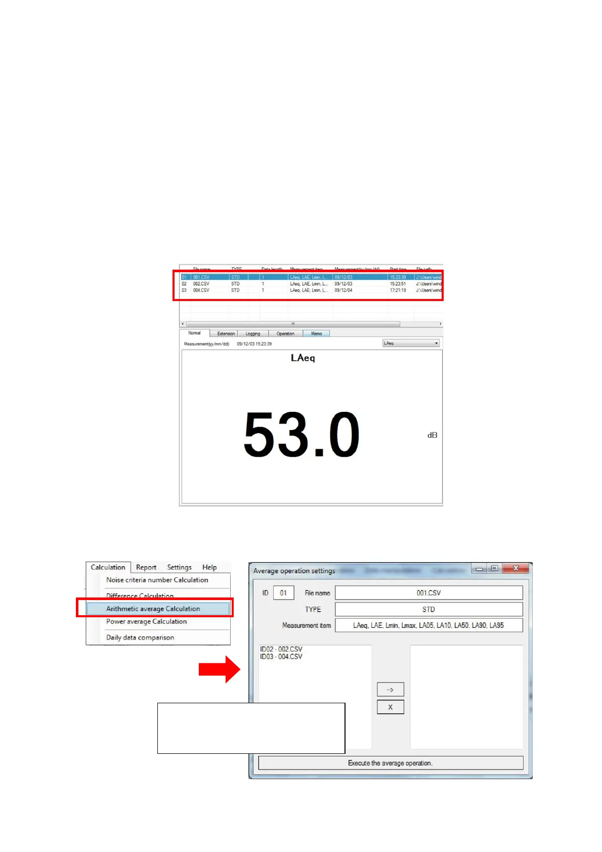 for calculation is made for the noise measurement data.