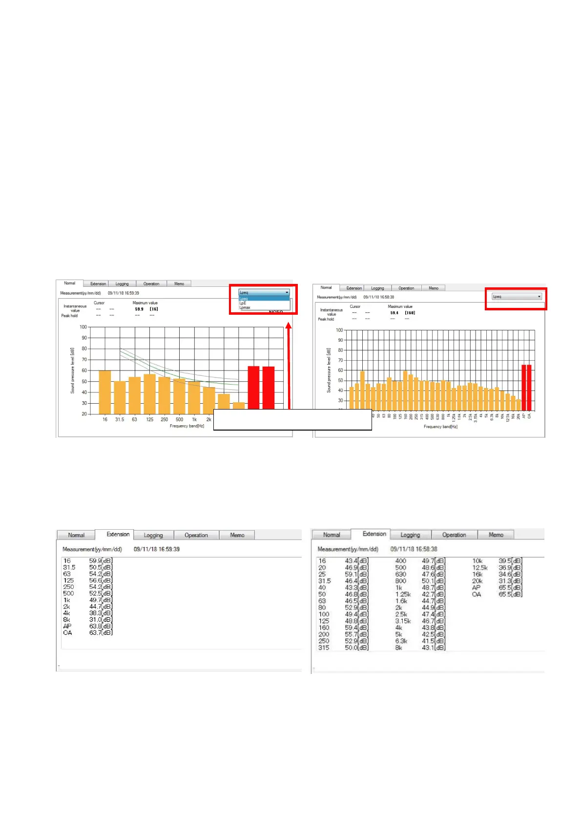 9.1 Display of measurement data in 1/1-1/3 Octave Real-time Analysis Card