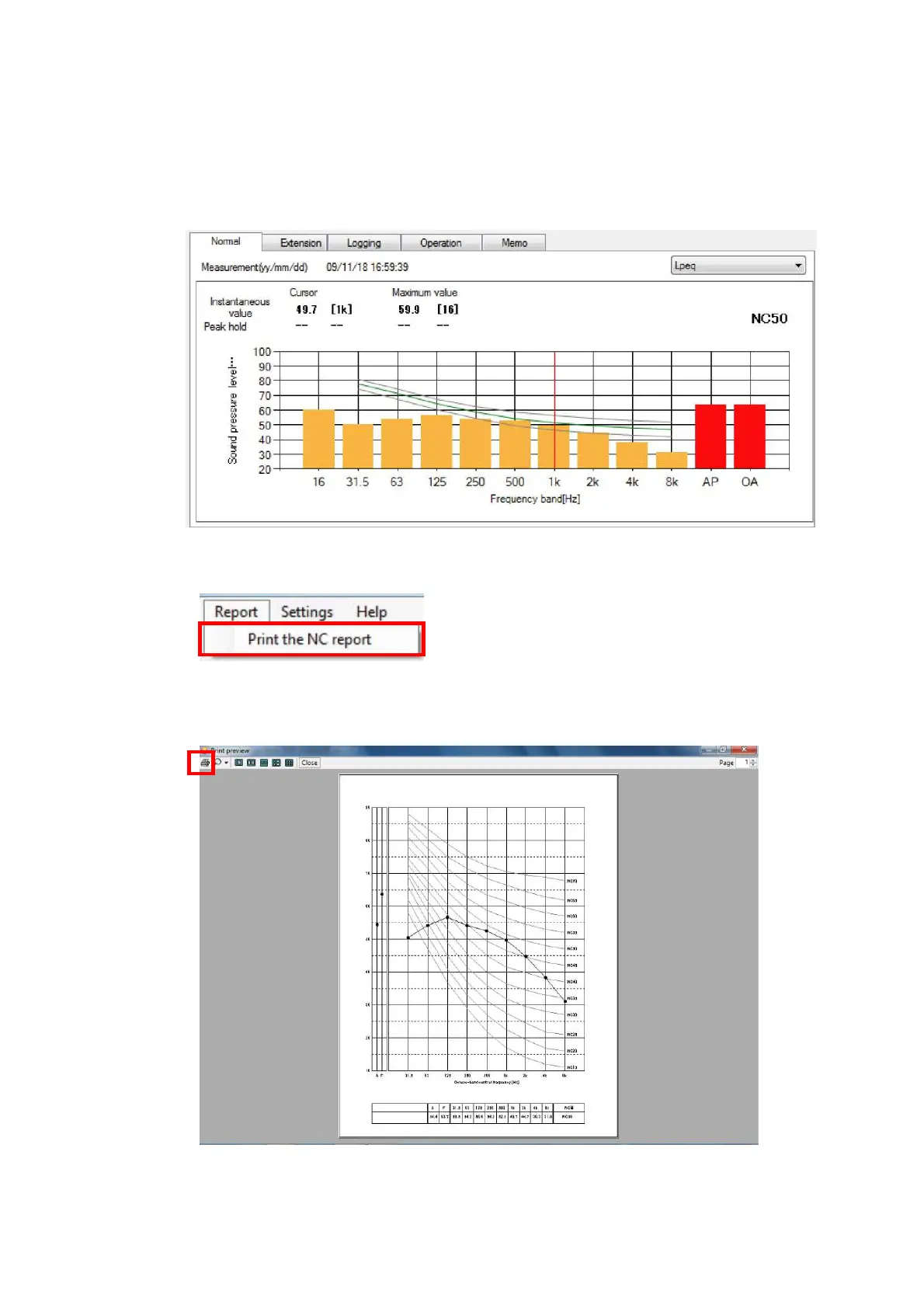 If the measurement data is for 1/1 Octave real-time Analysis and Z (Flat) characteristic, NC