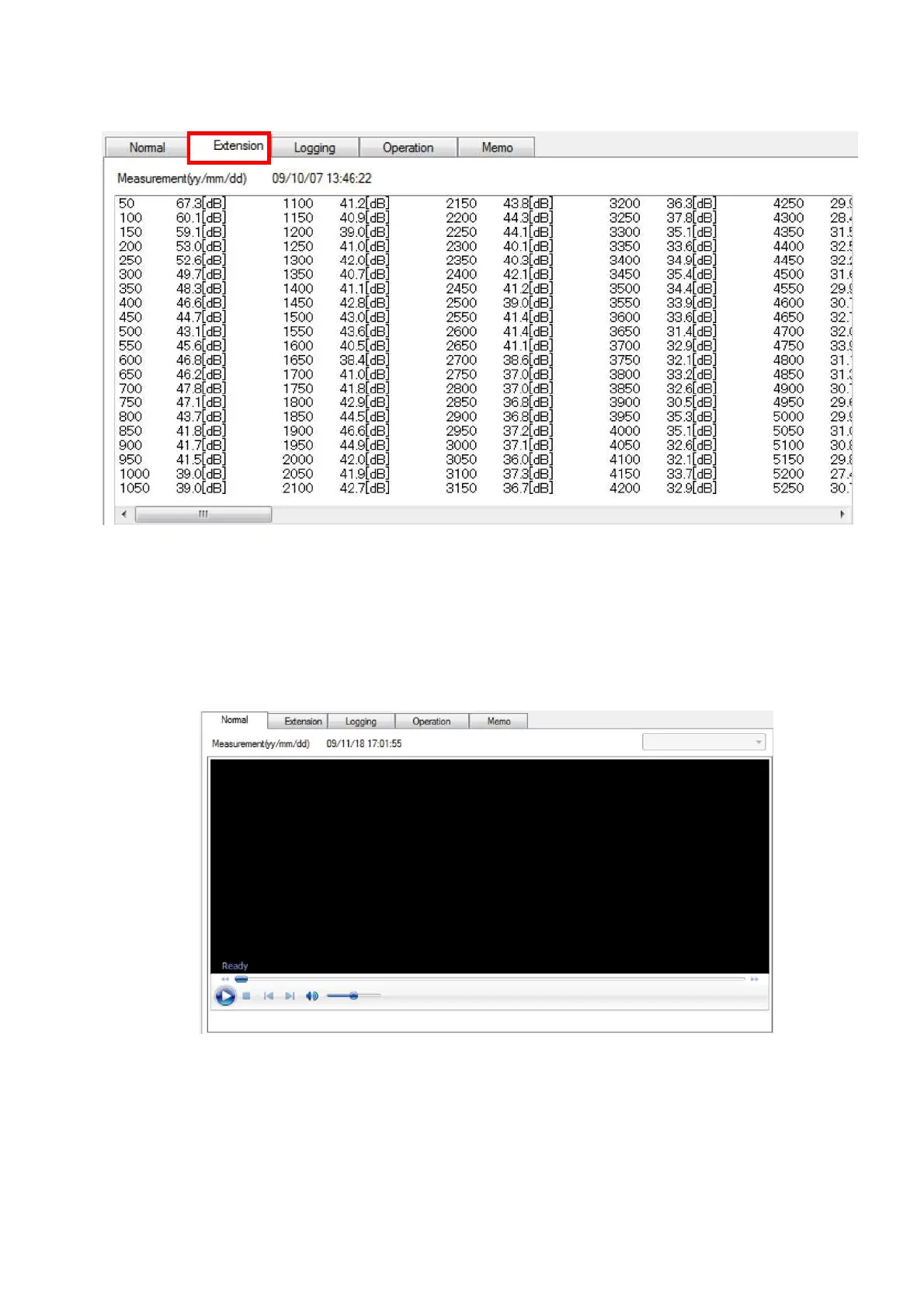 Select Normal Panel to replay the measurement data (Wav file).
