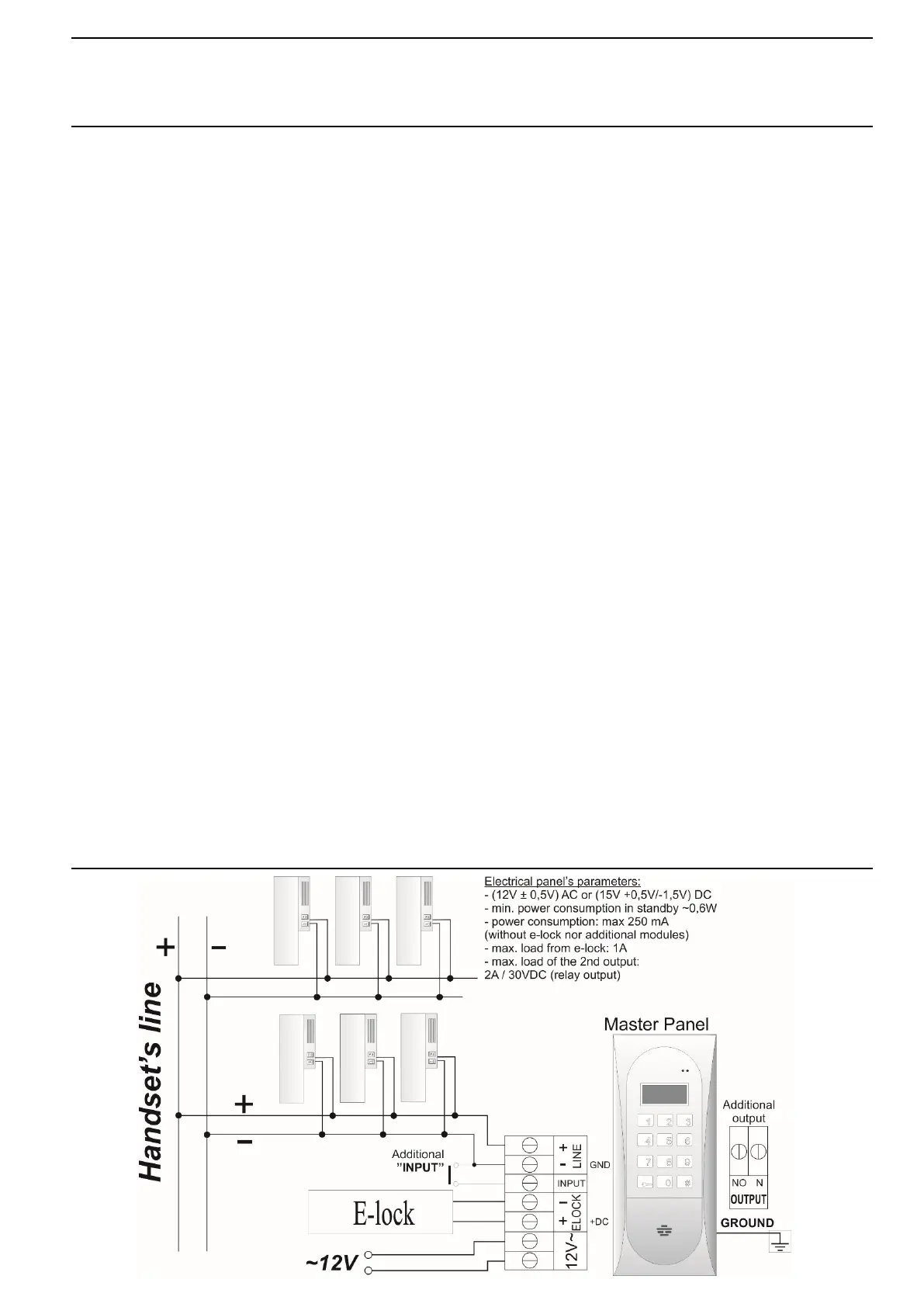 voltaeg to the clamps +DC (+ELOCK) and GND (LINE-). For video systems use only direct current
