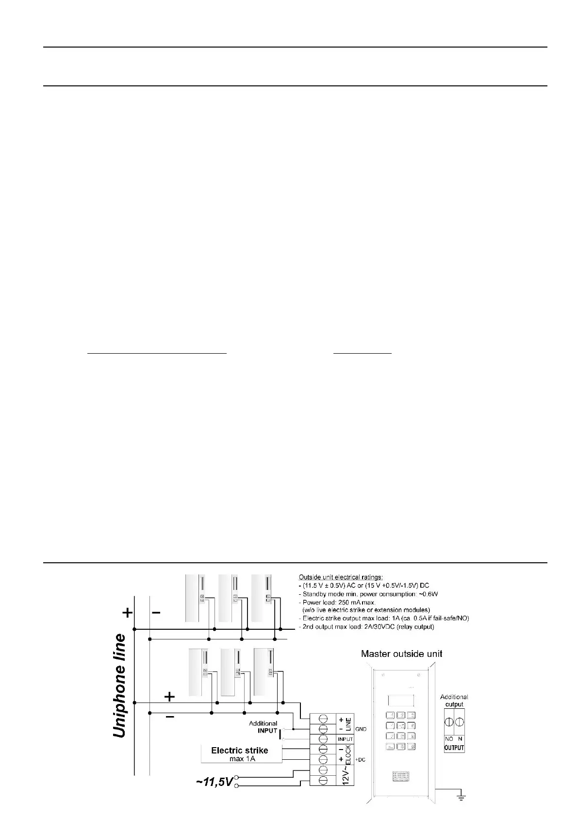 • 2 x 0.5mm: the outside unit output wiring to connect uniphones;