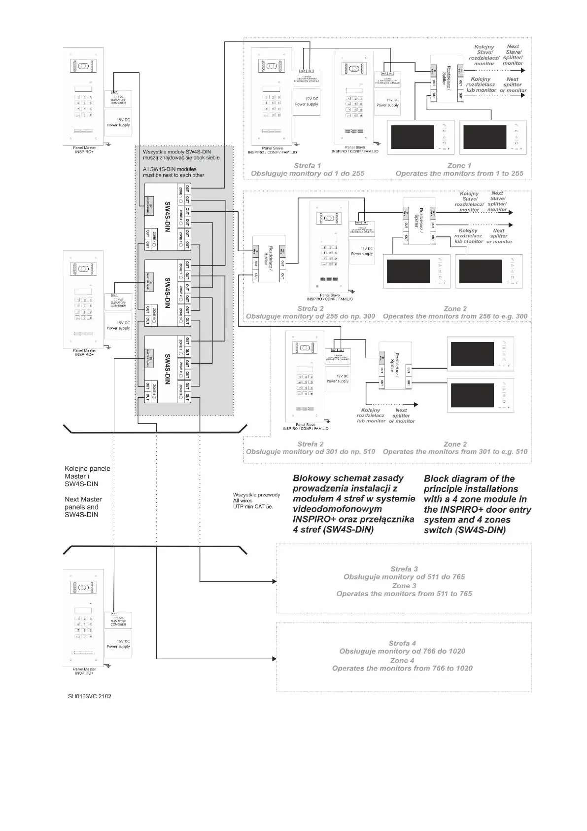 Sample wiring diagram of a 4 zone module installation (SW4S-DIN)