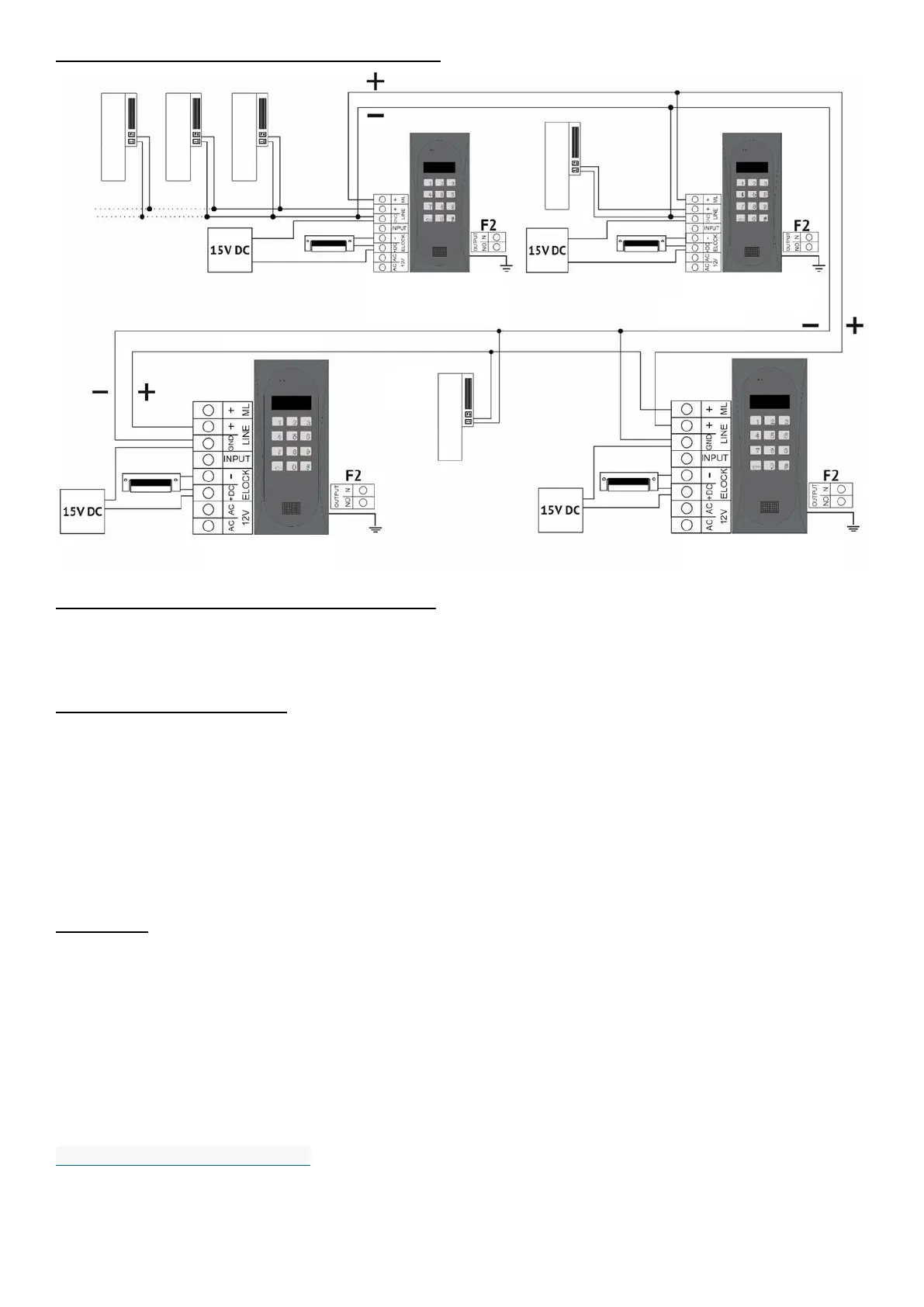 connection to "LINE+ and LINE-" terminals is correct. When using the 2 x 0.5 mm wire, the maximum distance