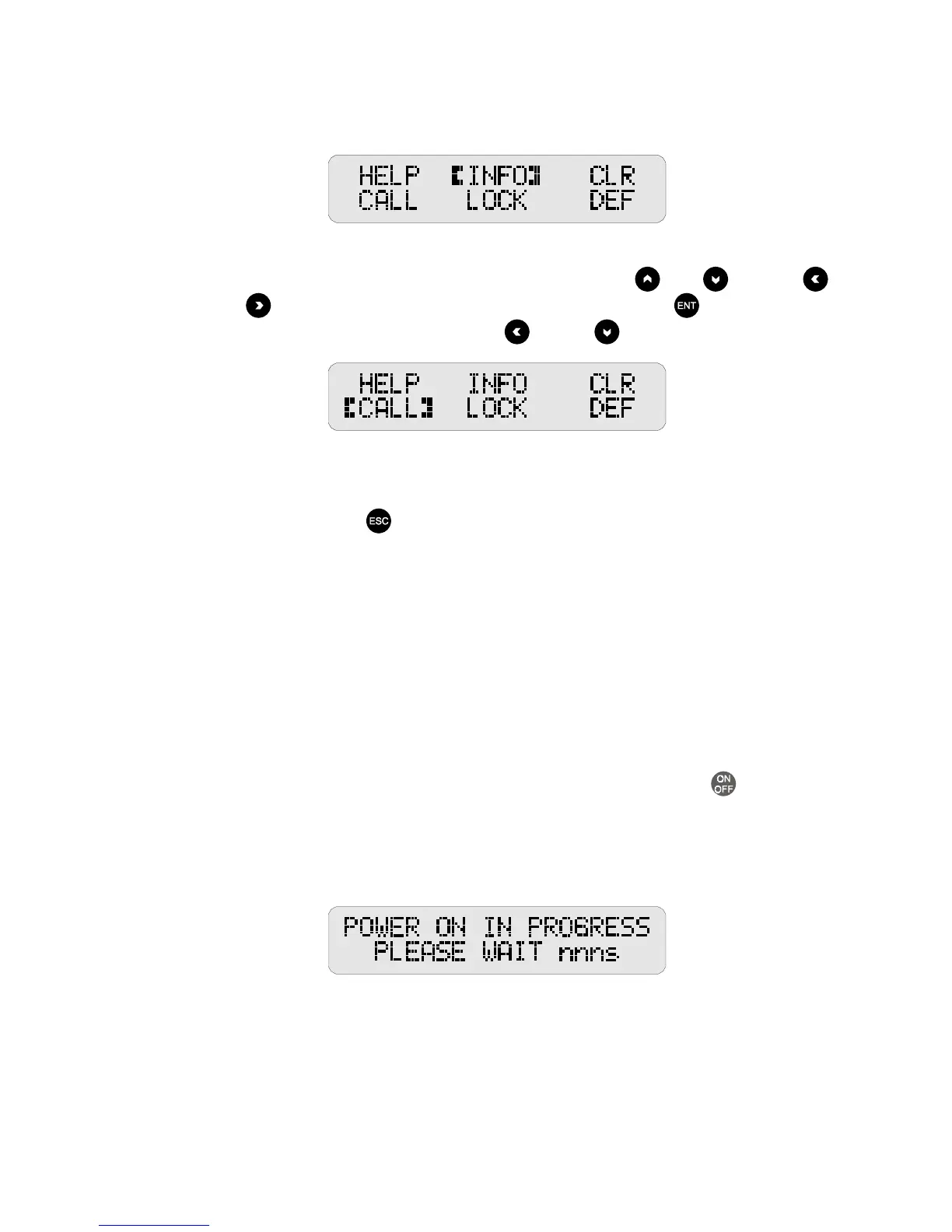 the OFF or MAIN menu. When that menu is reached, the ESC button becomes inoperative.