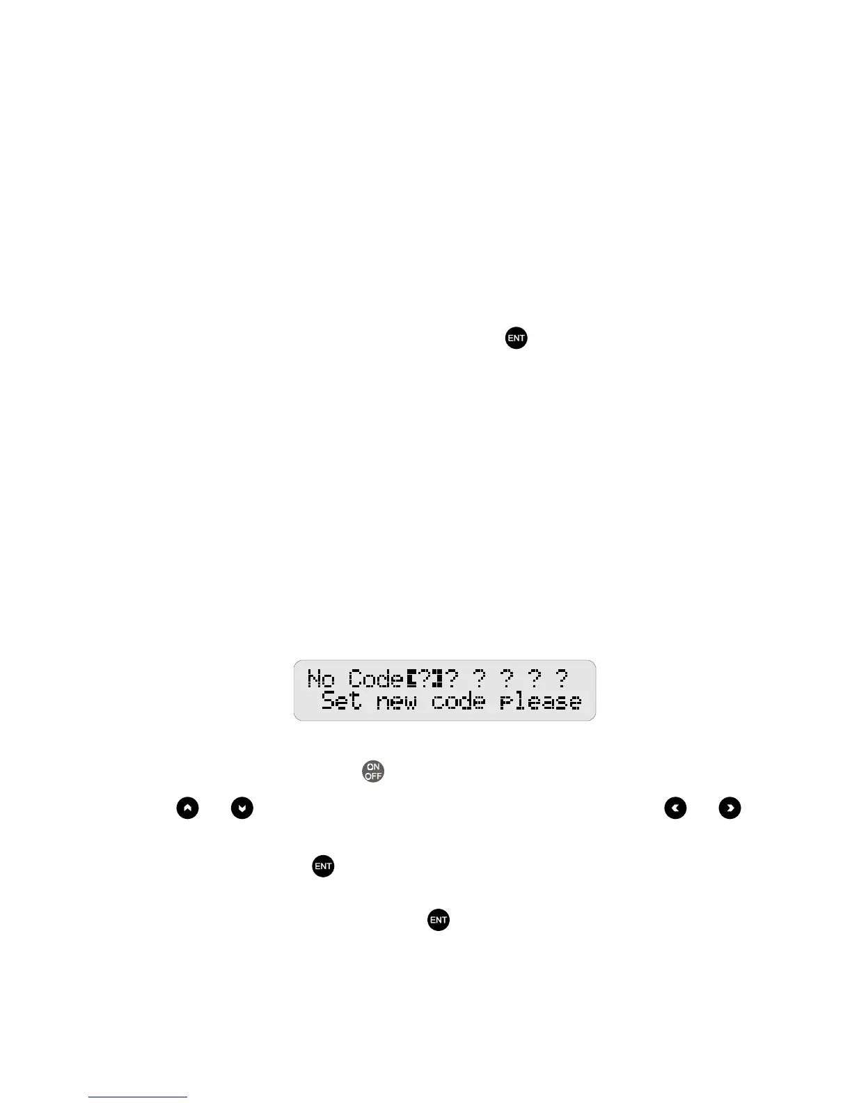 Initially, the code characters are question marks, which indicates that no code is set (the manufacturer