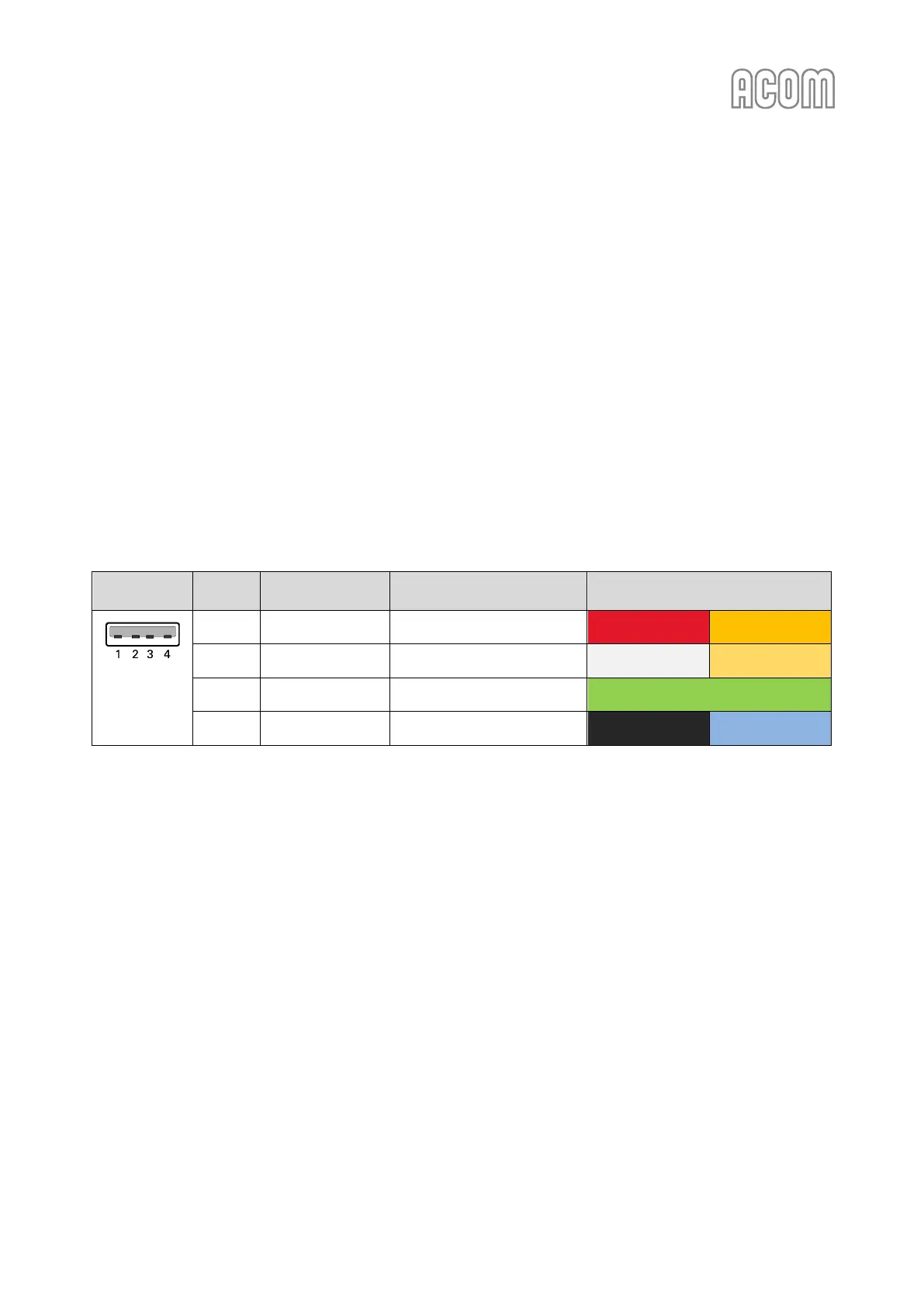 Table 2-6 | Signals and pin out of the RCU's USB type A connector