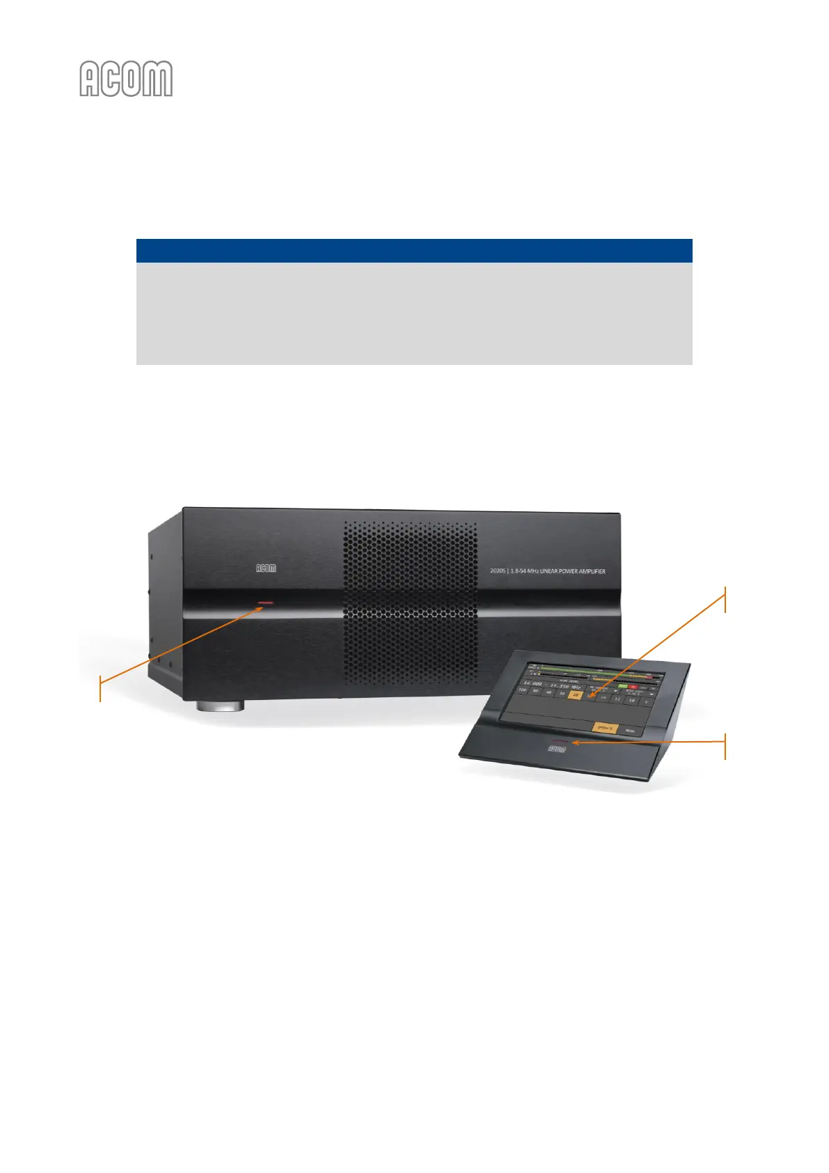 on amplifier's front panel will light up (see Figure 3-1 | Amplifier and RCU Front panels - Controls and Readouts,