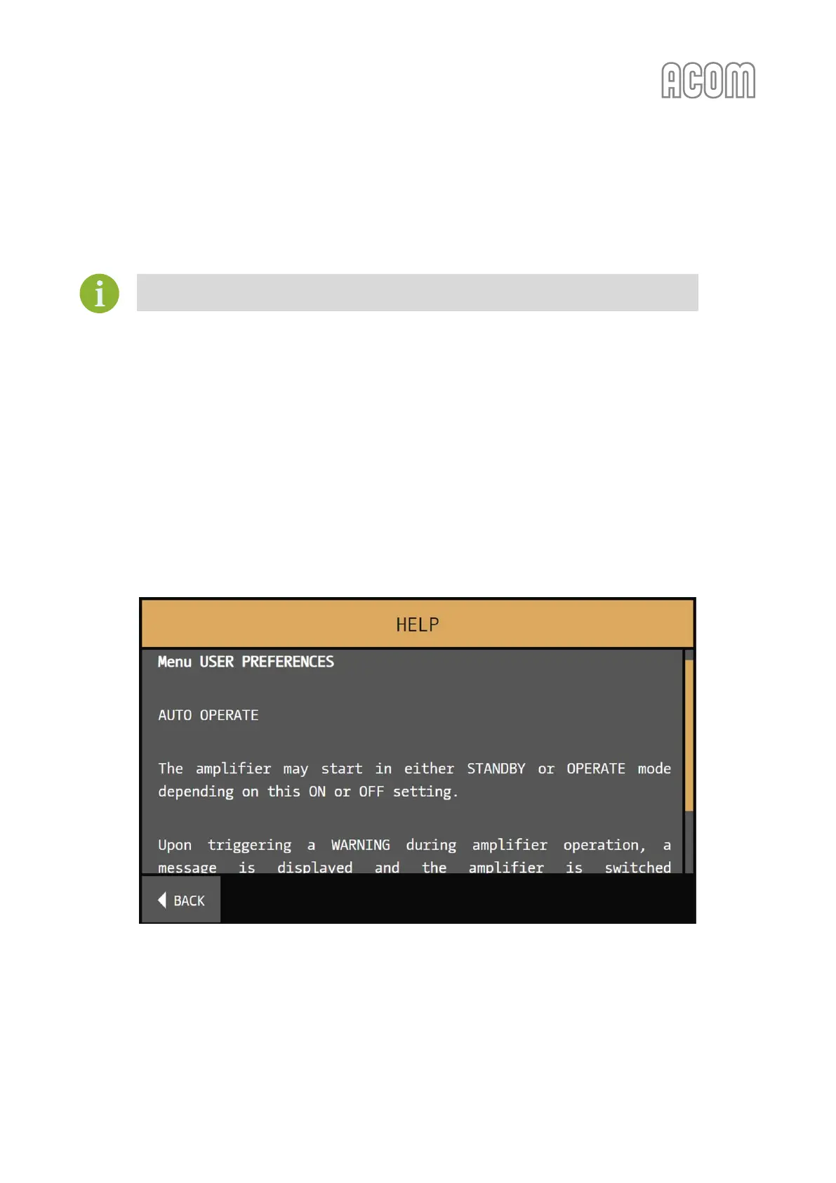 You can find HELP button in many of the amplifier's menus. This is a context sensitive information and