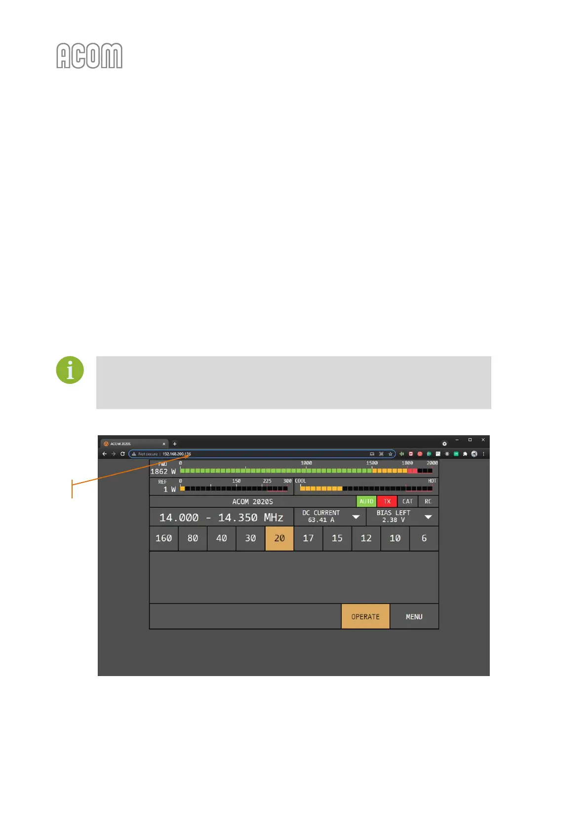 device (PC, smart phone, or tablet) connected to the same LAN network. The IP address of ACOM 2020S