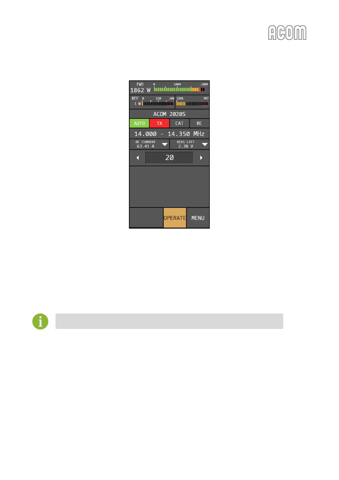 For ACOM 2020S RS-232 interface protocol, please, contact your dealer (see Section