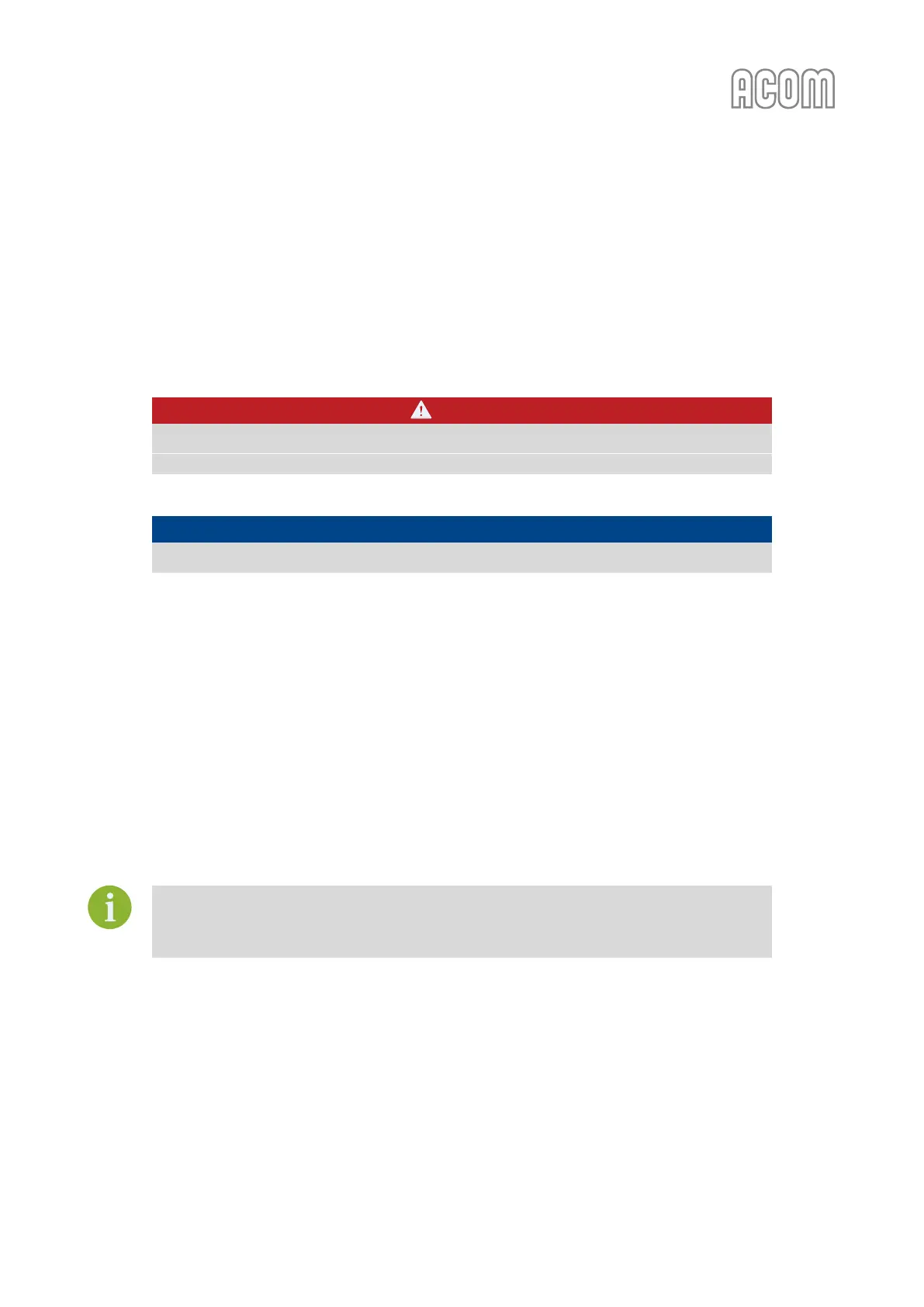 Contact your ACOM dealer for assistance (see Section 1.3 Owner Assistance).